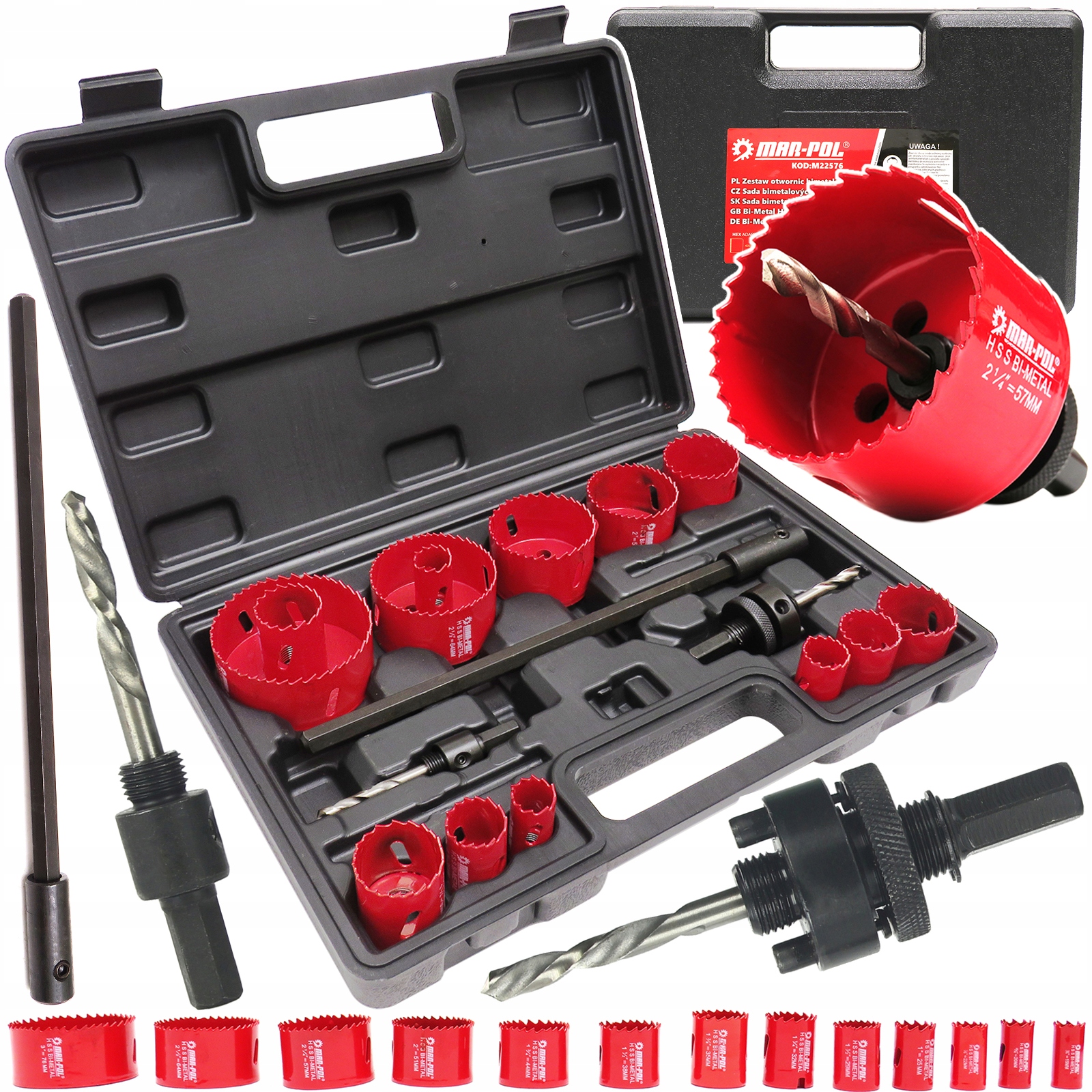 Set di Seghe a Tazza e Punte per Trapano | 17 Pezzi | 13 Seghe a Tazza Ø19 -76mm | 2 Trapani Attacco Esagonale 3/8", 7/16" | con Valigetta in Plastica