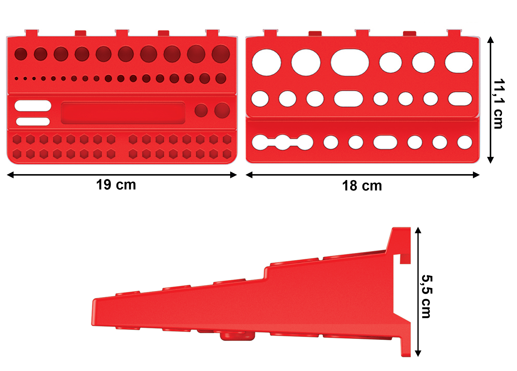 Set di 2 Mensoline Porta Attrezzi Utensili | 11,1x19x5,5 cm | Rosso | in Plastica