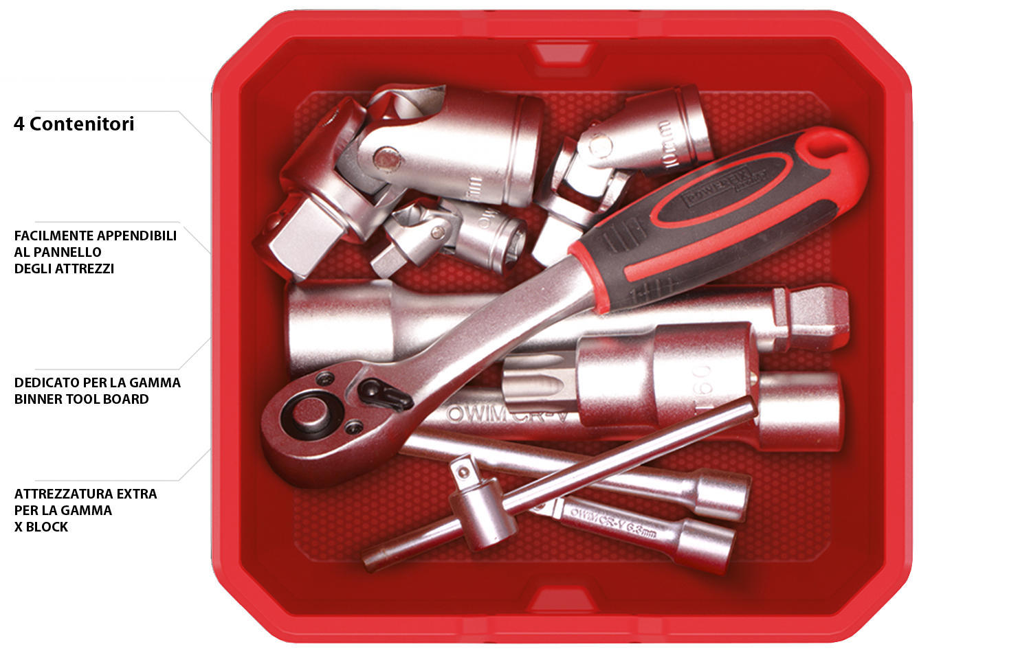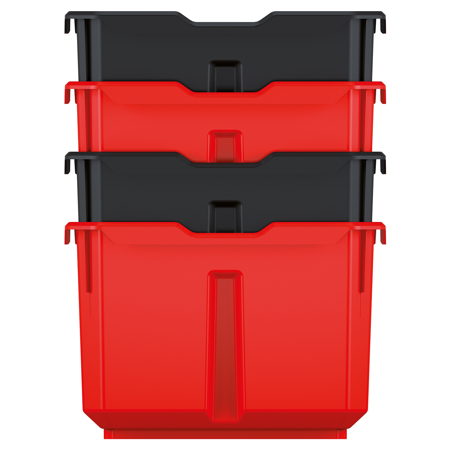 Set di 4 Contenitori XBlock | 14x15,7x8 cm | Rosso e Nero | in Plastica