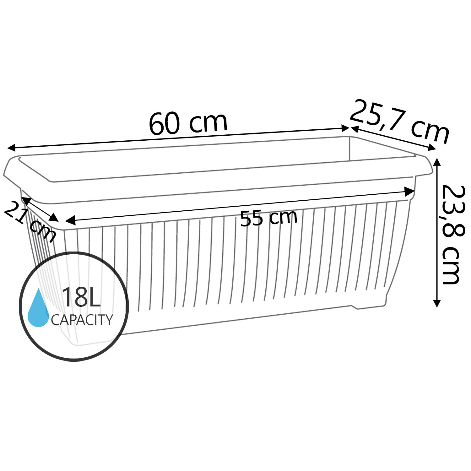 Vaso rettangolare Terra L60CM Nero