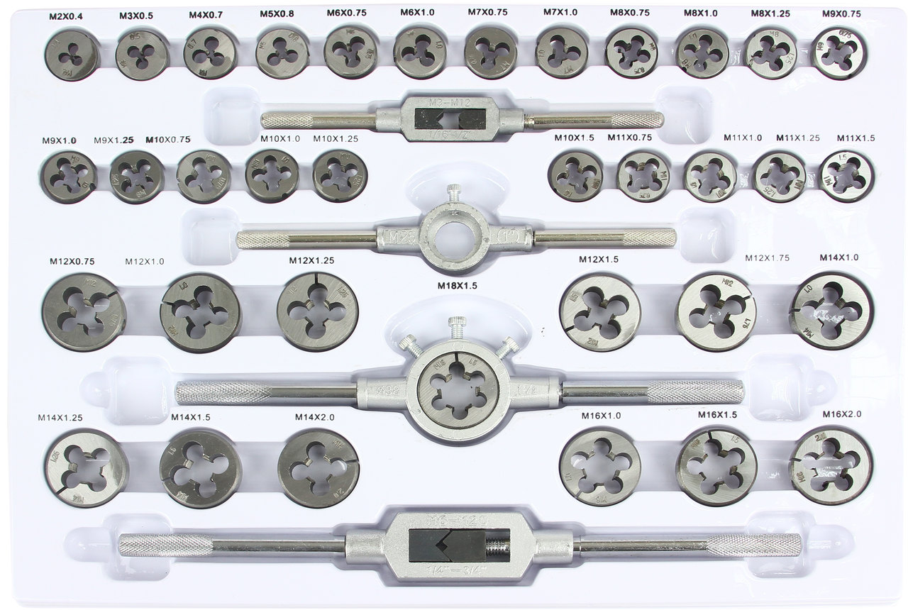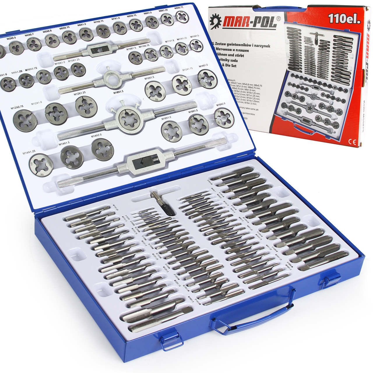 Set di Maschi e Filiere | 110 Pezzi Marpol | 35 Maschi Conici, 35 Maschi a Spine, 35 Filiere, 2 Maschi a Bussola, 2 Filiere a Bussola, 1 Maschio a T | con Valigetta