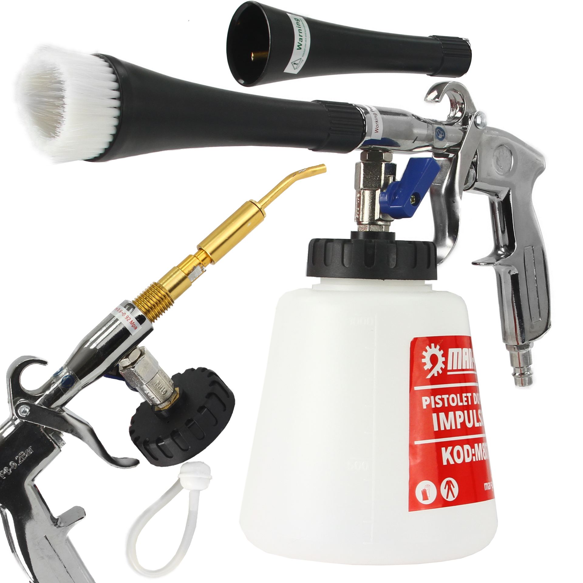 La pistola per lavaggio è uno strumento ideale per la pulizia completa di tappezzerie auto, tappeti, mobili, plastica, cerchi, specchi retrovisori, bocchette dell'aria e altri oggetti vari.