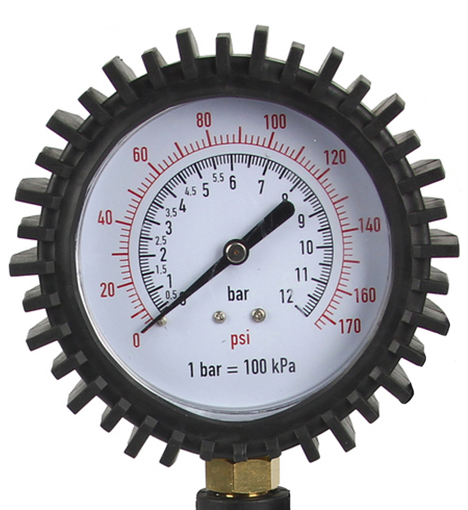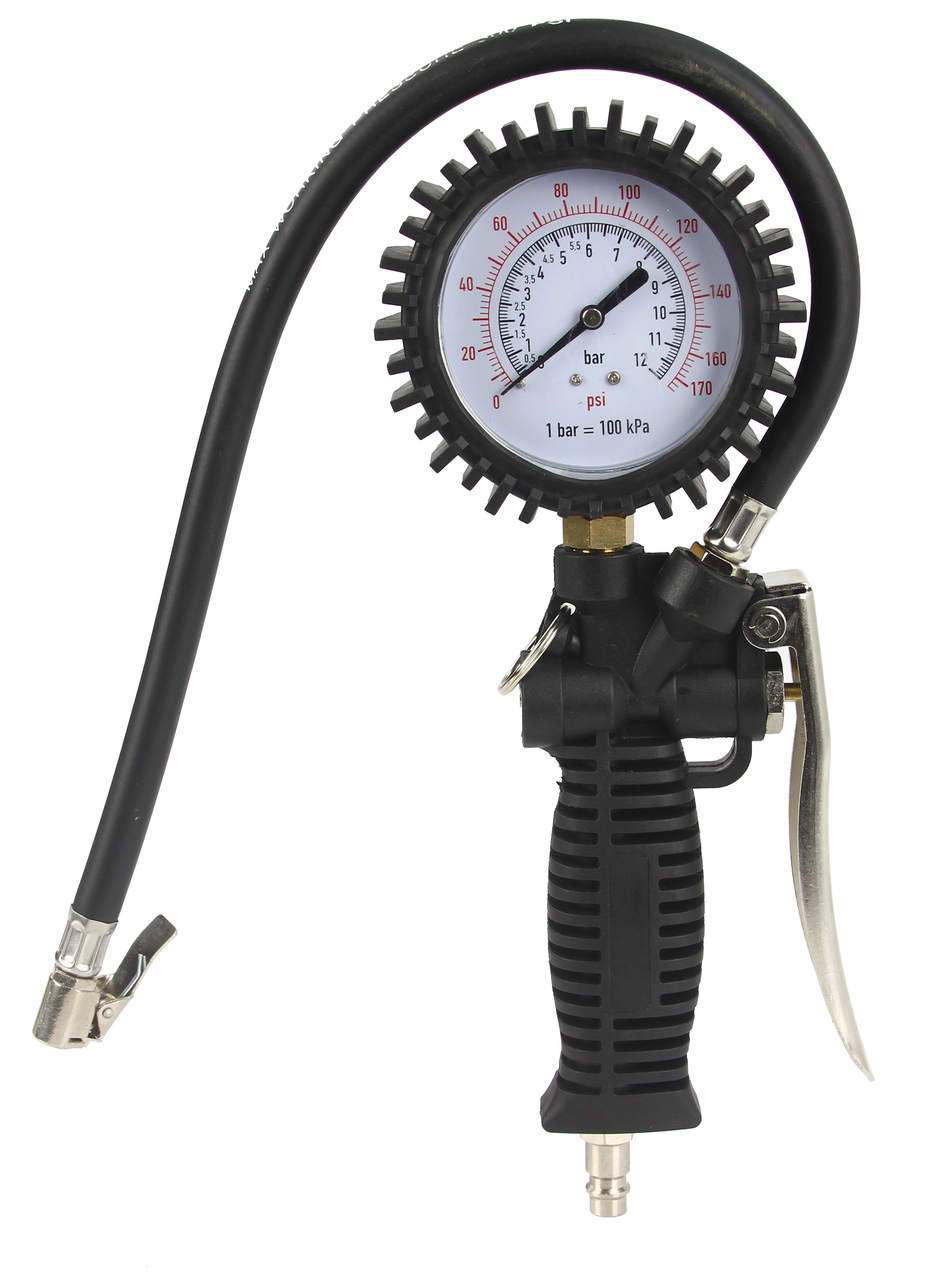 Pistola per Gonfiaggio con Manometro | Scala di Pressione fino a 12 Bar / 170 psi | Attacco Rapido 1/4' | Tubo 44 cm | Valvola a 2 Stadi