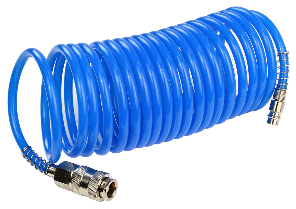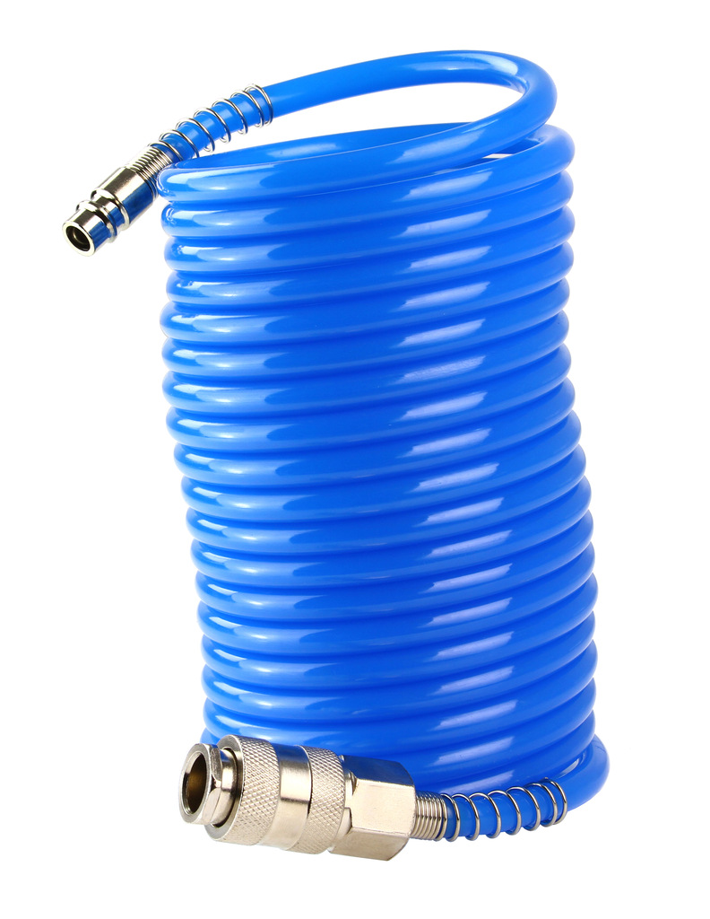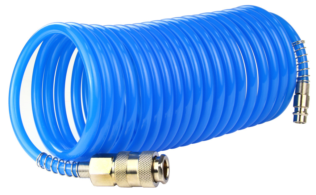 Tubo Pneumatico Spiralato Flessibile | 5 Metri | Diametro 6x8 mm | Pressione di Esercizio 6 Bar | con Attacchi Rapidi