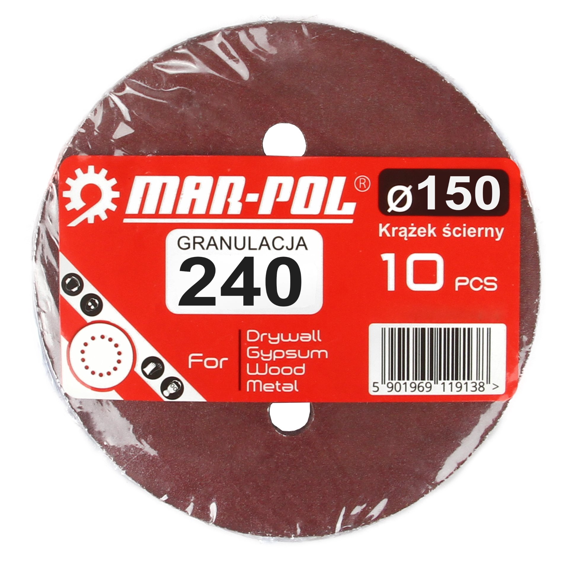 Set 10 Dischi Abrasivi | Carta Vetrata | Ø150 mm | Granulazione P240 | 8 Fori | per Smerigliatrice