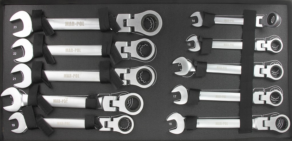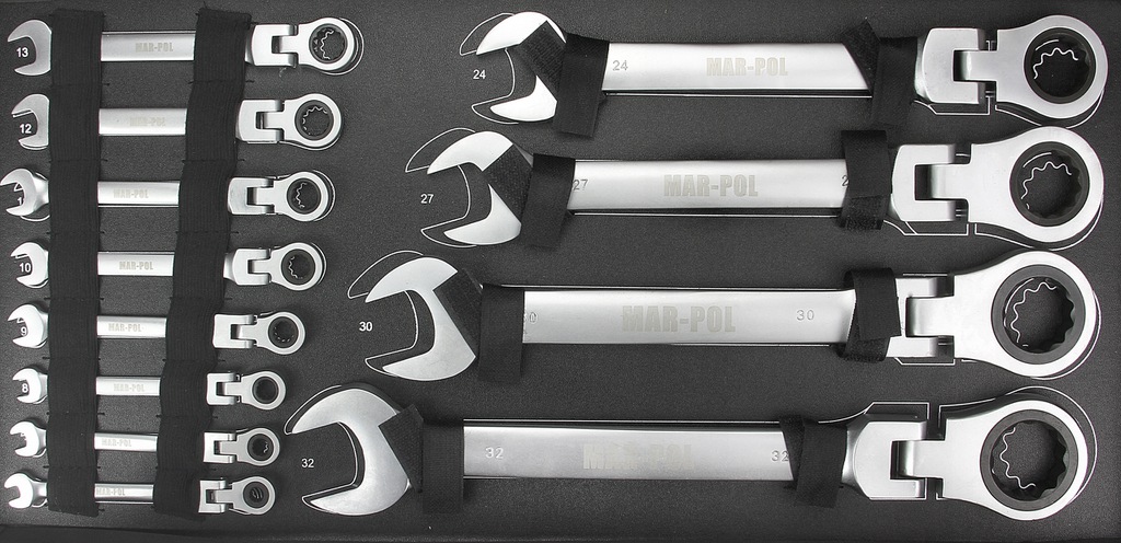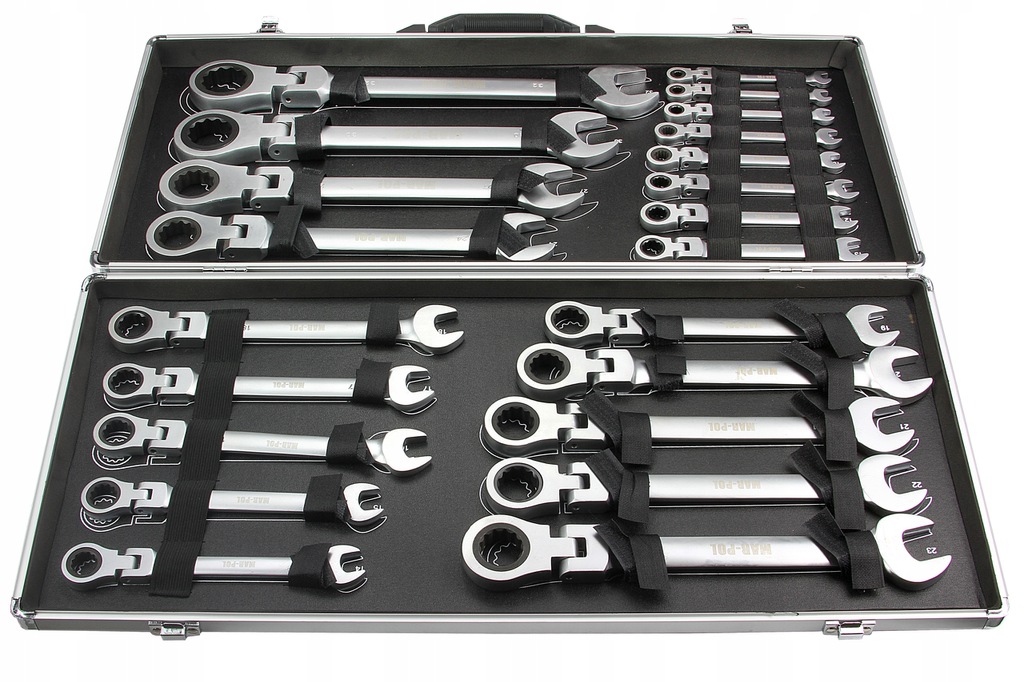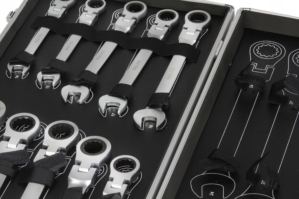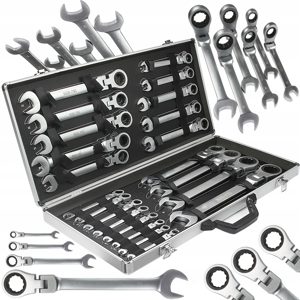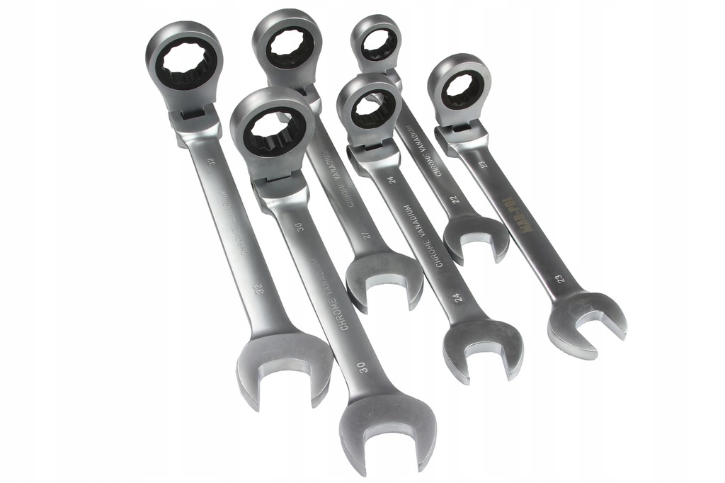 Set Chiavi Combinate a Cricchetto Forchetta | 22 Pezzi | Reversibili | Snodate | 6-32 mm | 72 Denti | Passo 5° | in Acciaio CrV
