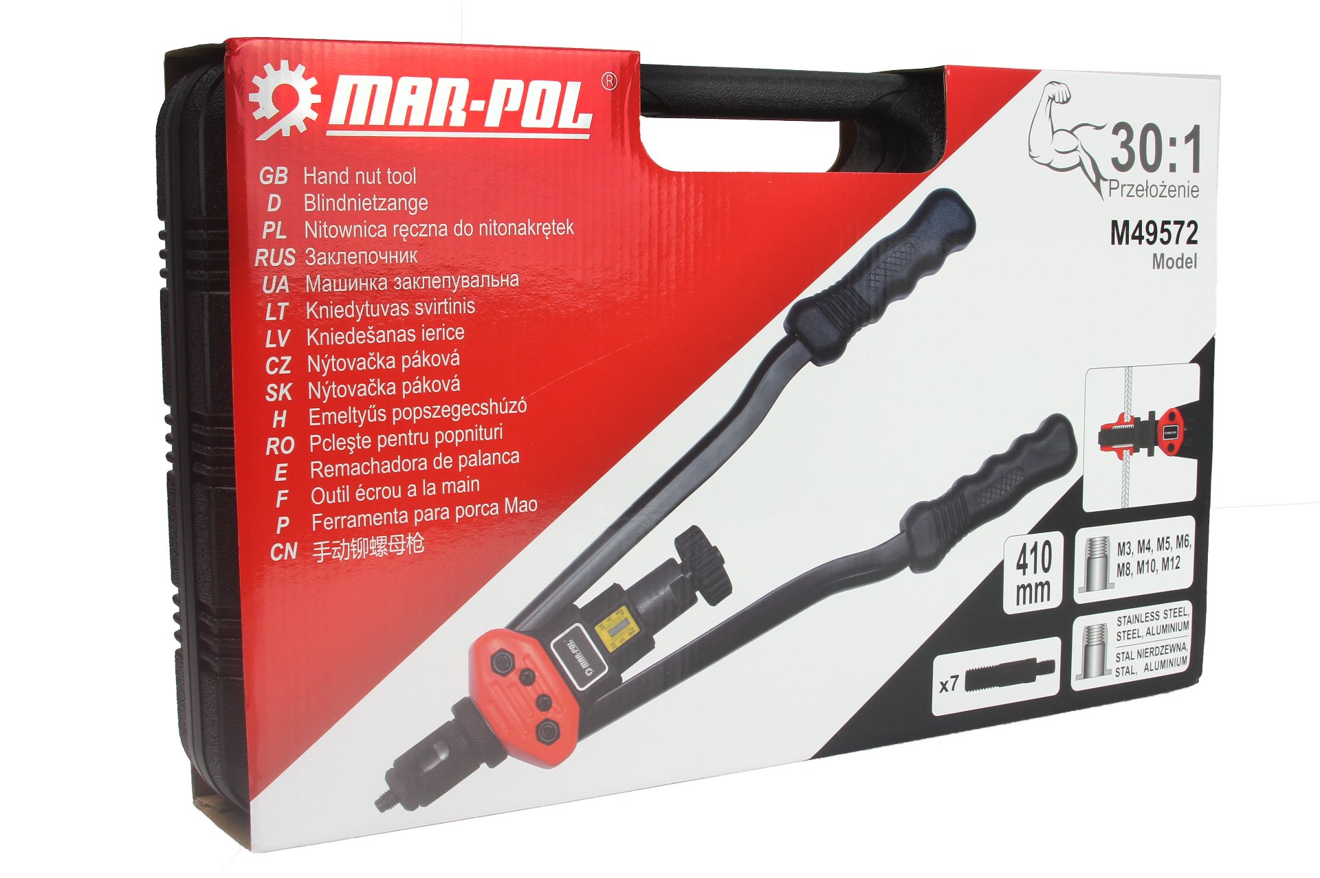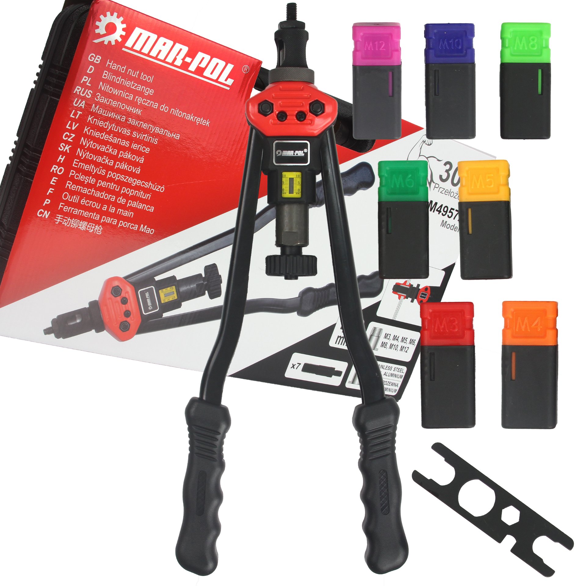 Rivettatrice Manuale | per Rivetti Filettati | Testine M3 M4 M5 M6 M8 M10 M12 | Manici Ricoperti in Gomma 410 mm | con Valigetta