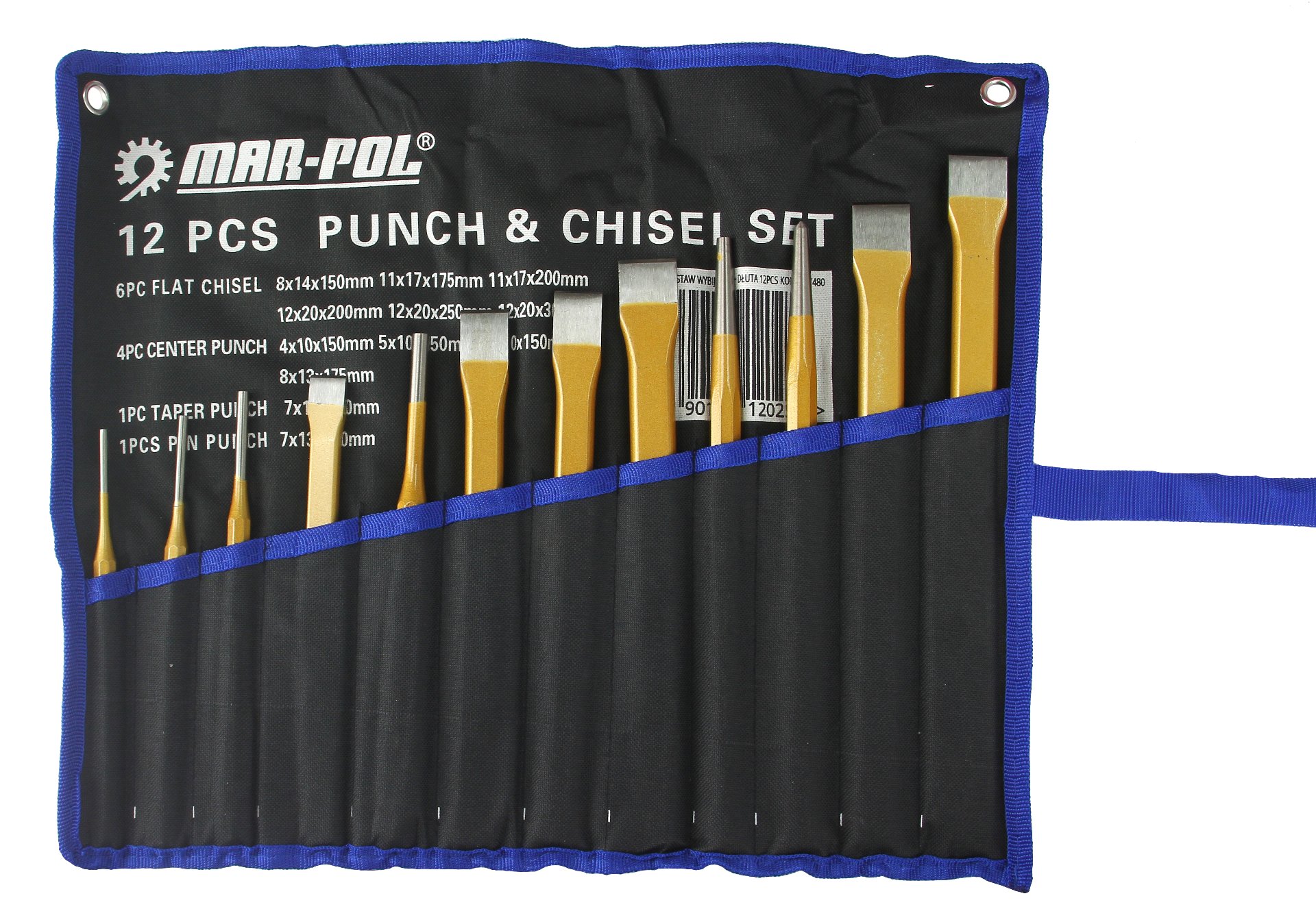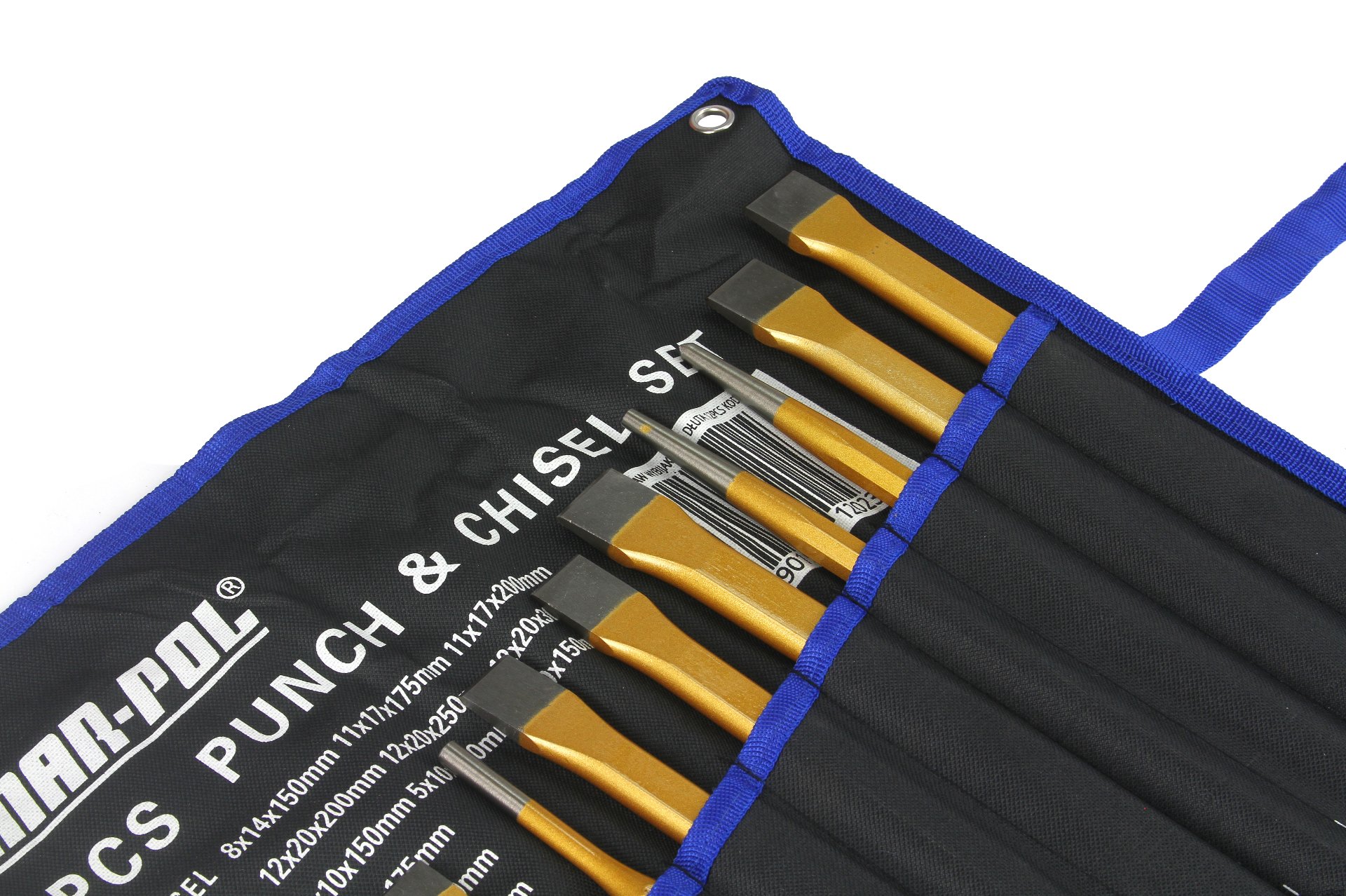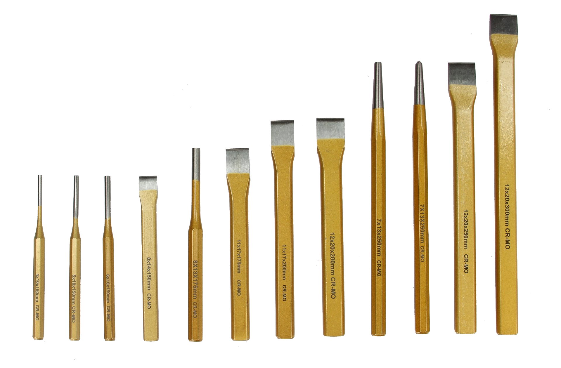 Set di Scalpelli Punzoni Cacciaspina | 12 Pezzi | Scalpelli 8-12 mm | Cacciaspine 4-8 mm | Punzone Conico Cilindrico 7 mm | con Custodia