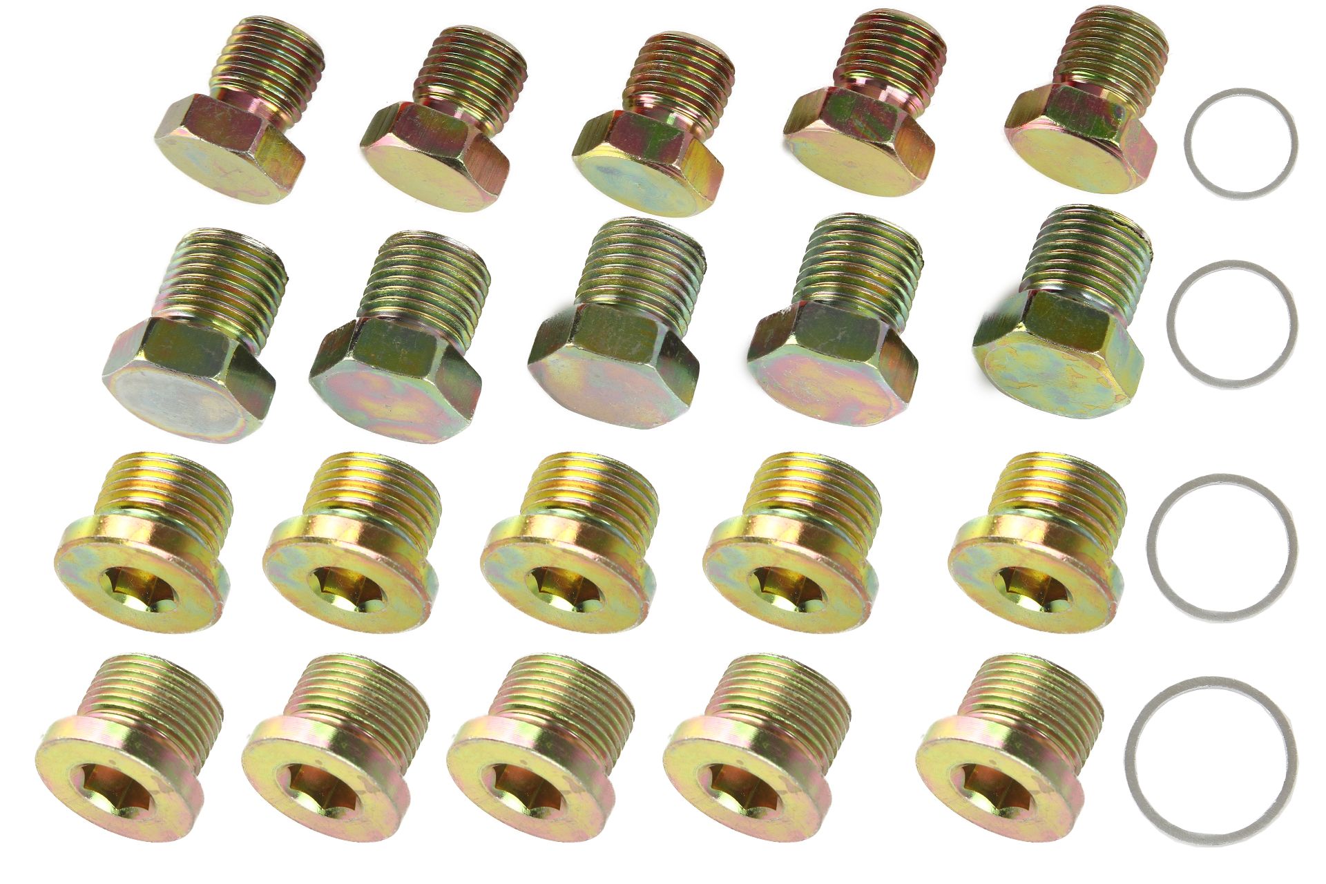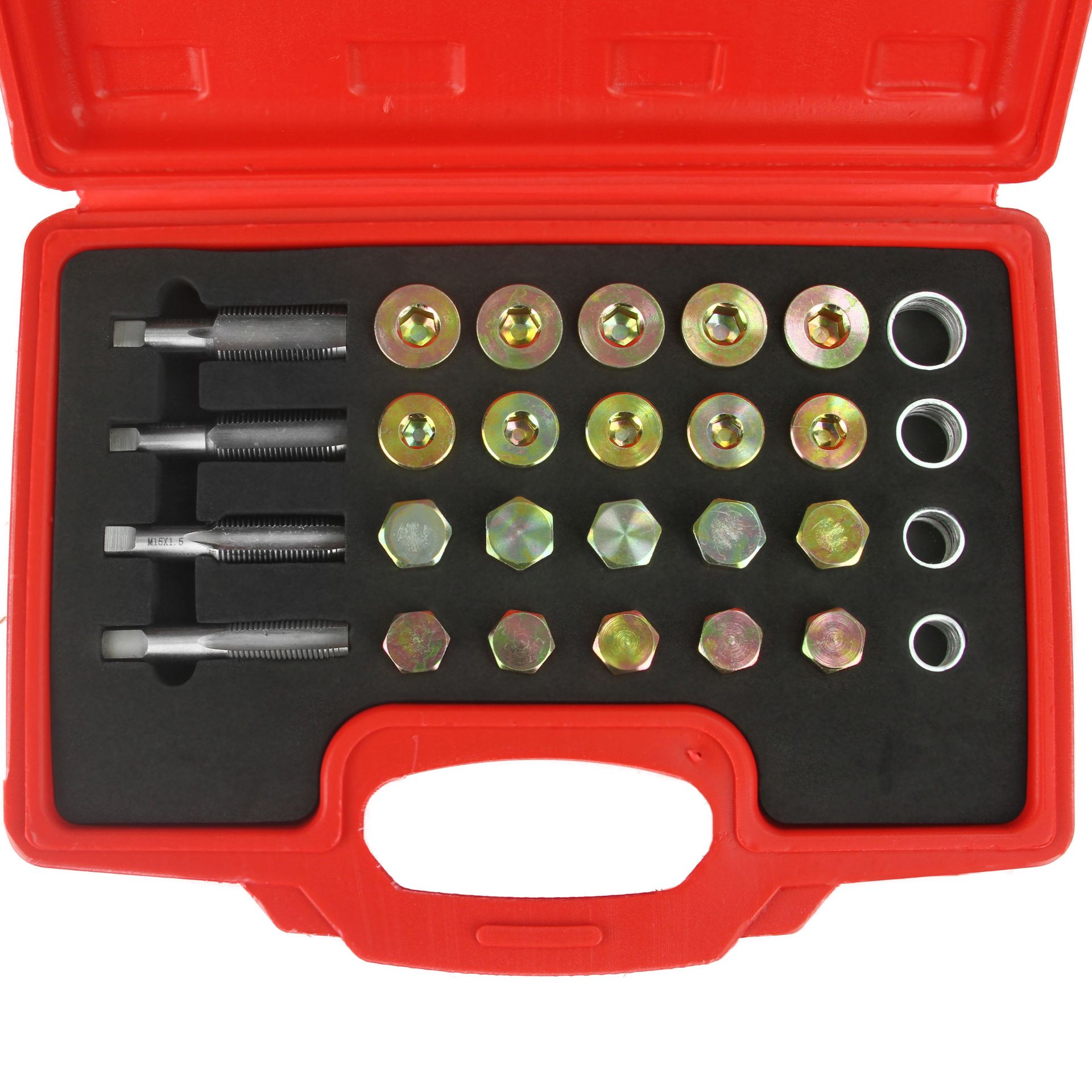 Set di Riparazione dei Filetti nei Tappi dell'Olio | 64 Pezzi | Maschi M13x1,5 / M15x1,5 / M17x1,5 / M20x1,5 | 20 Tappi | 40 Rondelle | con Valigetta