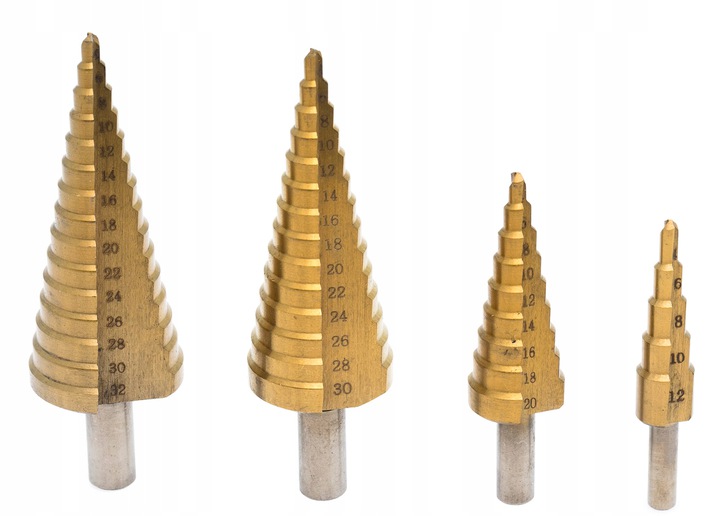 Set di Punte HSS a Scalino | per Trapano | 4 Pezzi | Graduate | Ø4-32 mm | con Scatola