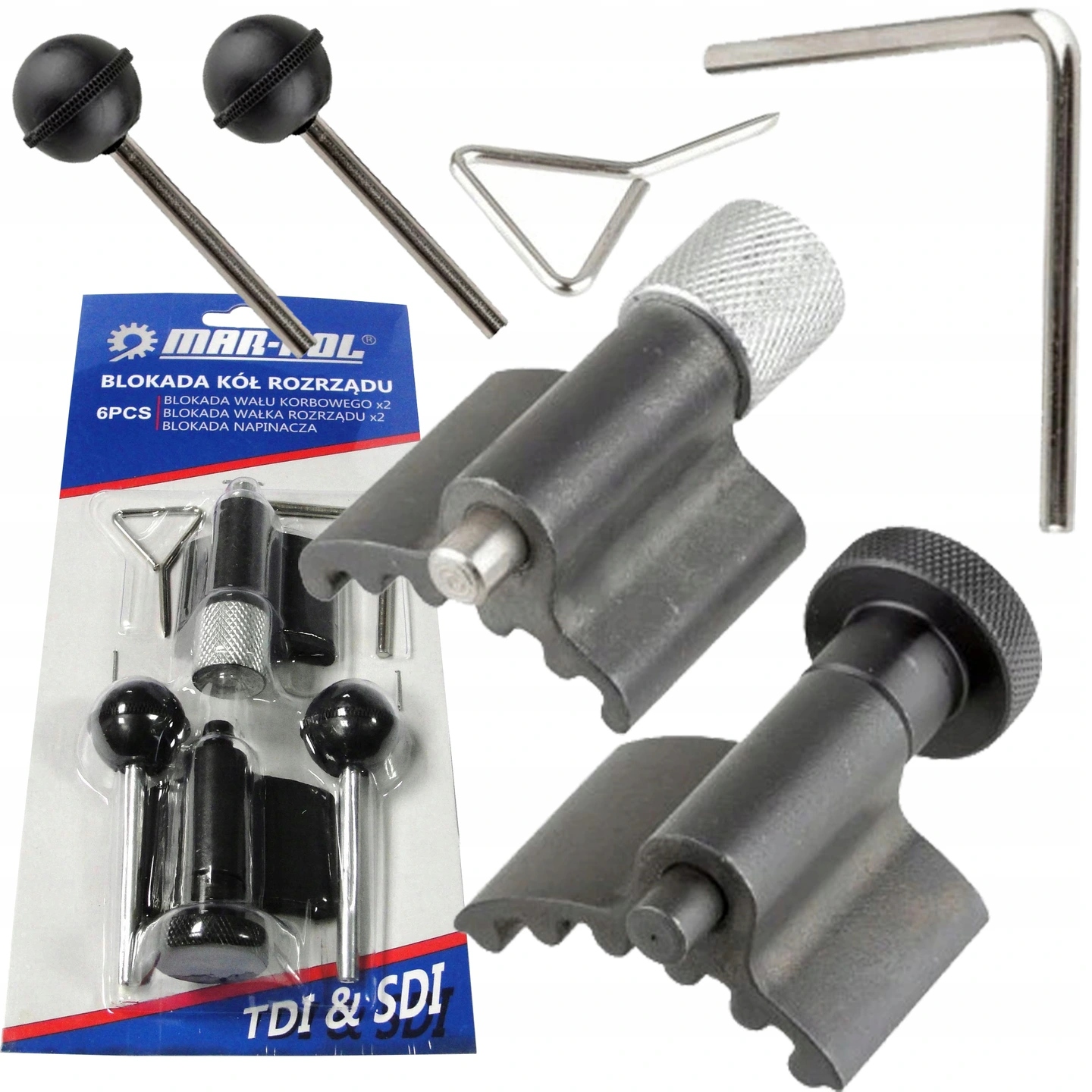 . Il kit consente di immobilizzare gli ingranaggi di distribuzione in posizione di servizio durante la sostituzione della cinghia di distribuzione. La forma speciale delle serrature consente un'impostazione precisa dei punti di controllo dell'accensione.