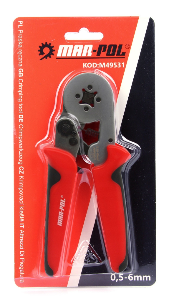 Pinza Crimpatrice per Cavi Conduttori | 0,5-6 mm | Manici Ricoperti in Gomma | per Morsetti Singoli Doppi Isolati e Non Isolati