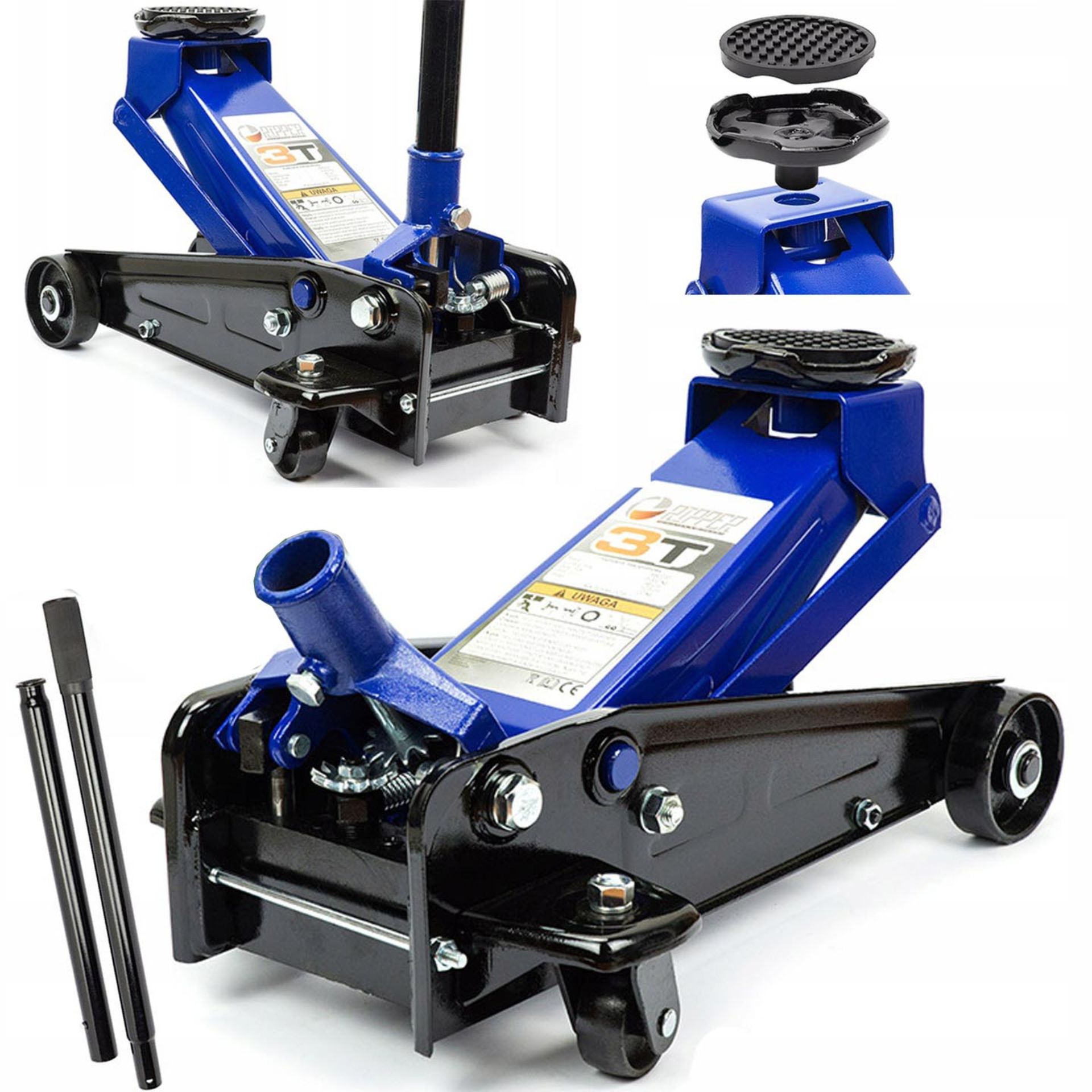 Sollevatore Idraulico Ribassato da 3T | Sollevamento 12,5-46 cm | con Gomma Stabilizzatrice | con Ruote
