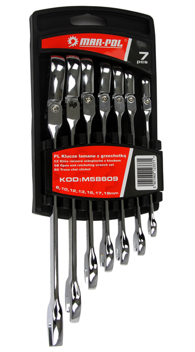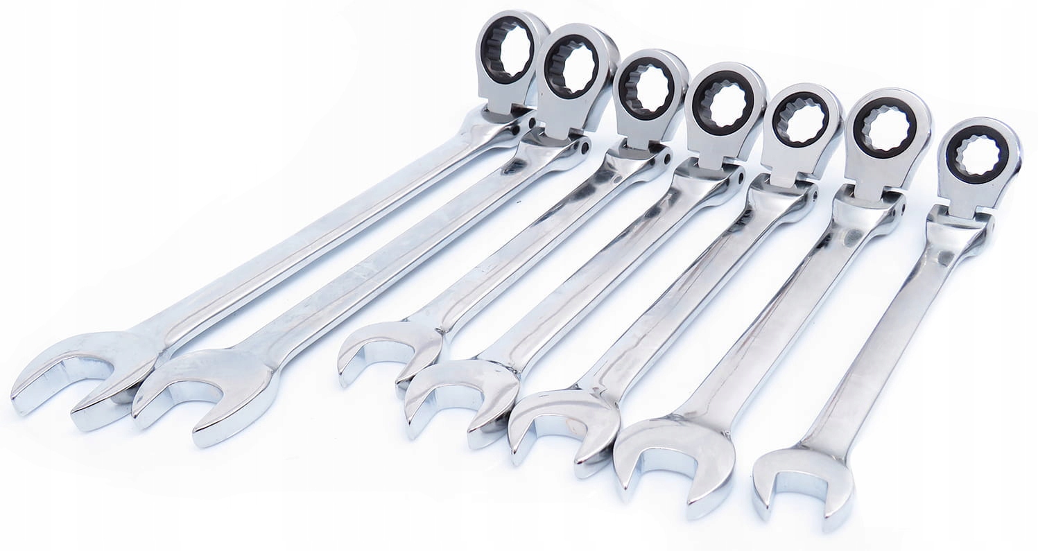 Set Chiavi Combinate a Cricchetto Forchetta | 7 Pezzi | Reversibili | Snodate | 8-19 mm | 72 Denti | Passo 5° | in Acciaio CrV