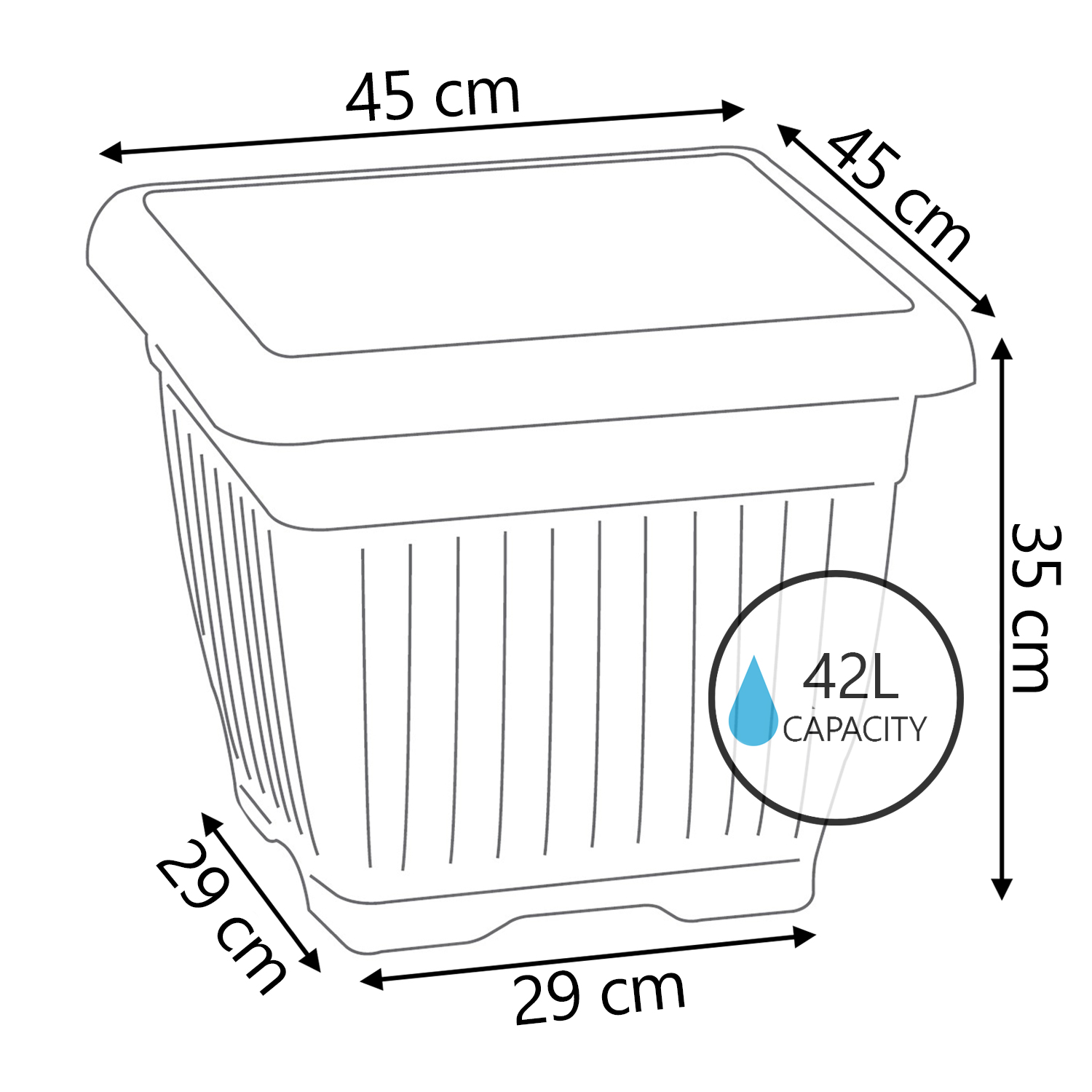 Vaso Fioriera Quadrato Terra L45CM Nero