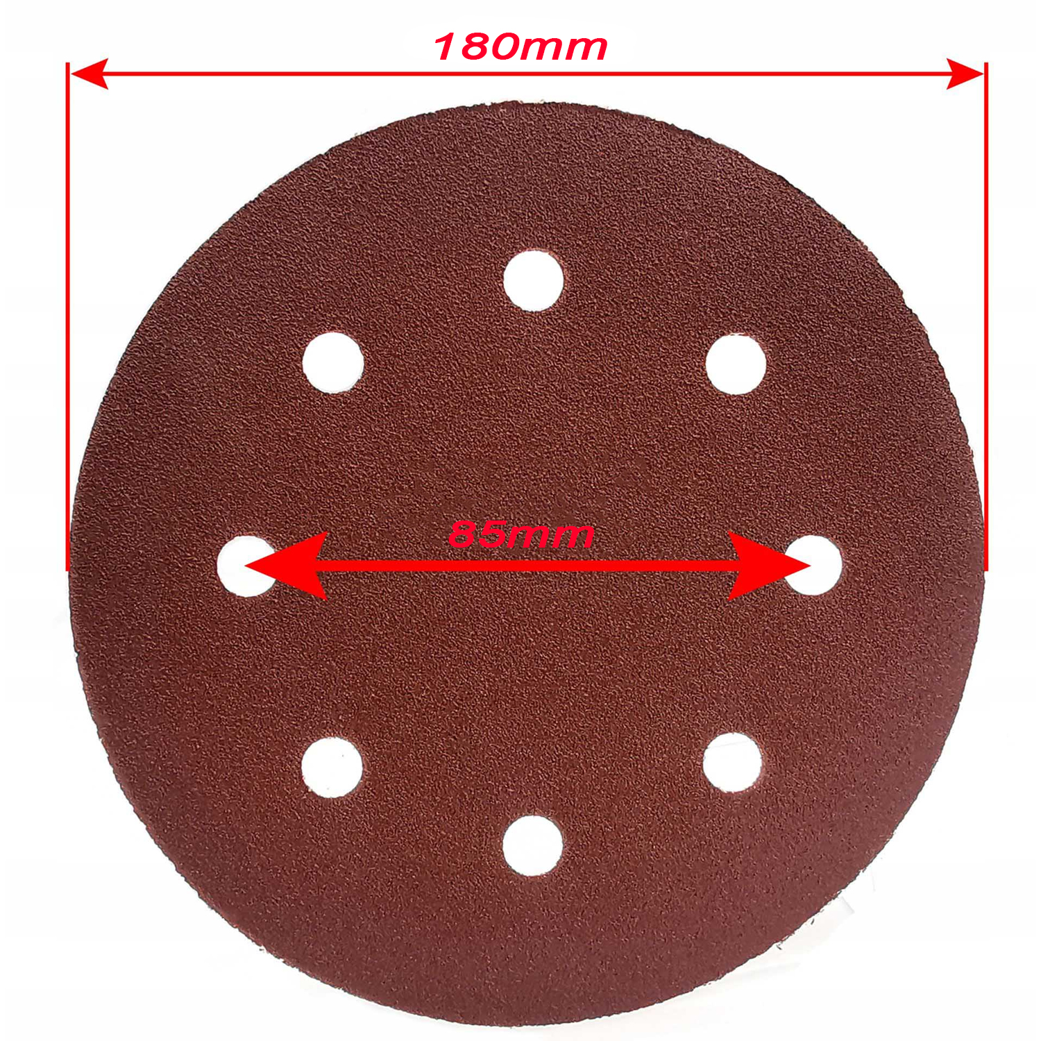 Set 10 Dischi Abrasivi | Carta Vetrata | Ø180 mm | Granulazione P240 | 8 Fori | per Smerigliatrice