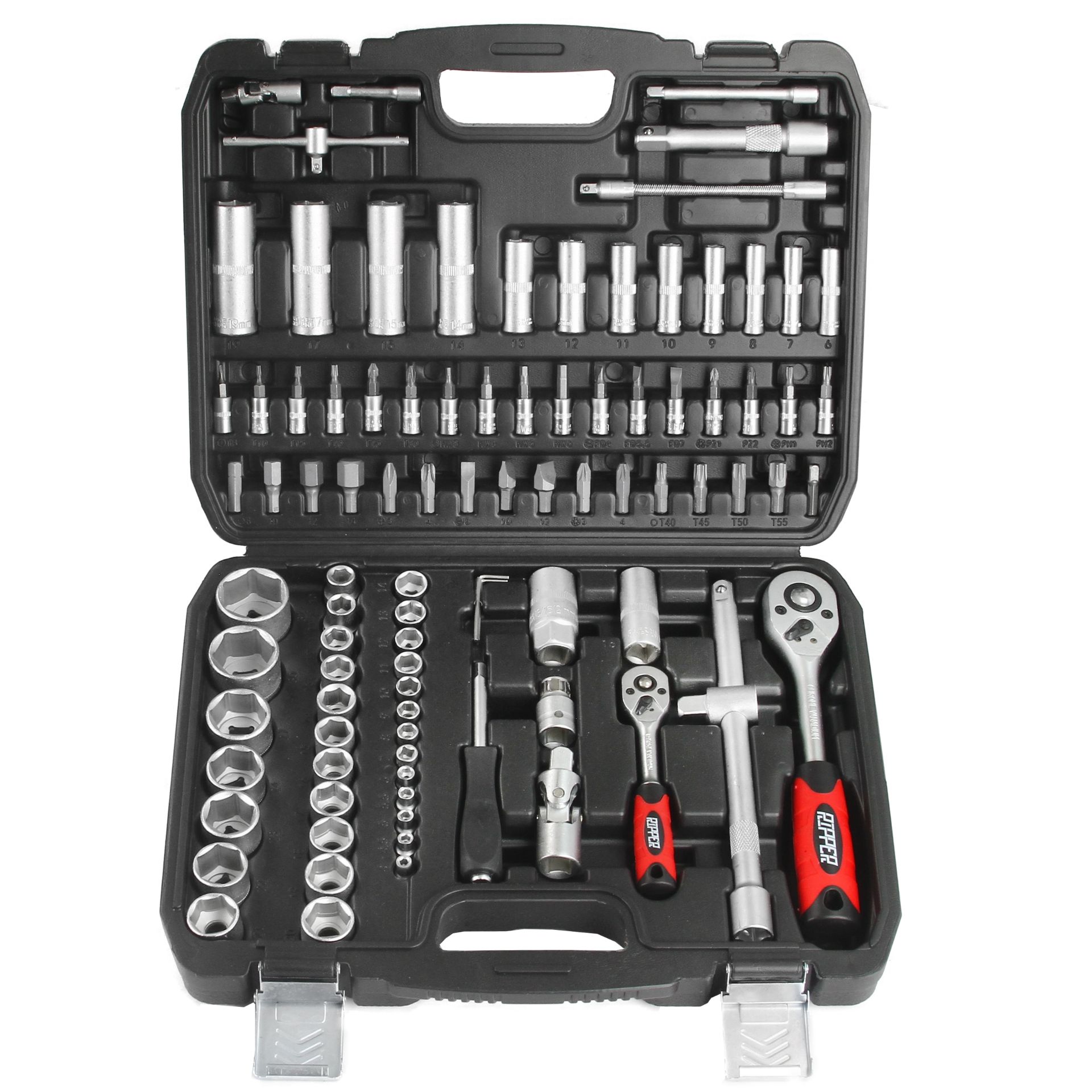 Set Chiavi a Bussola Cricchetto | 94 Pezzi | Bussole 1/4" Corte 4-14 mm, Lunghe 6-13mm | Bussole 1/2" Corte 14-32 mm, Lunghe 14-19 mm | 15 Punte per Cacciavite | 17 Punte con Inserto | con Valigetta