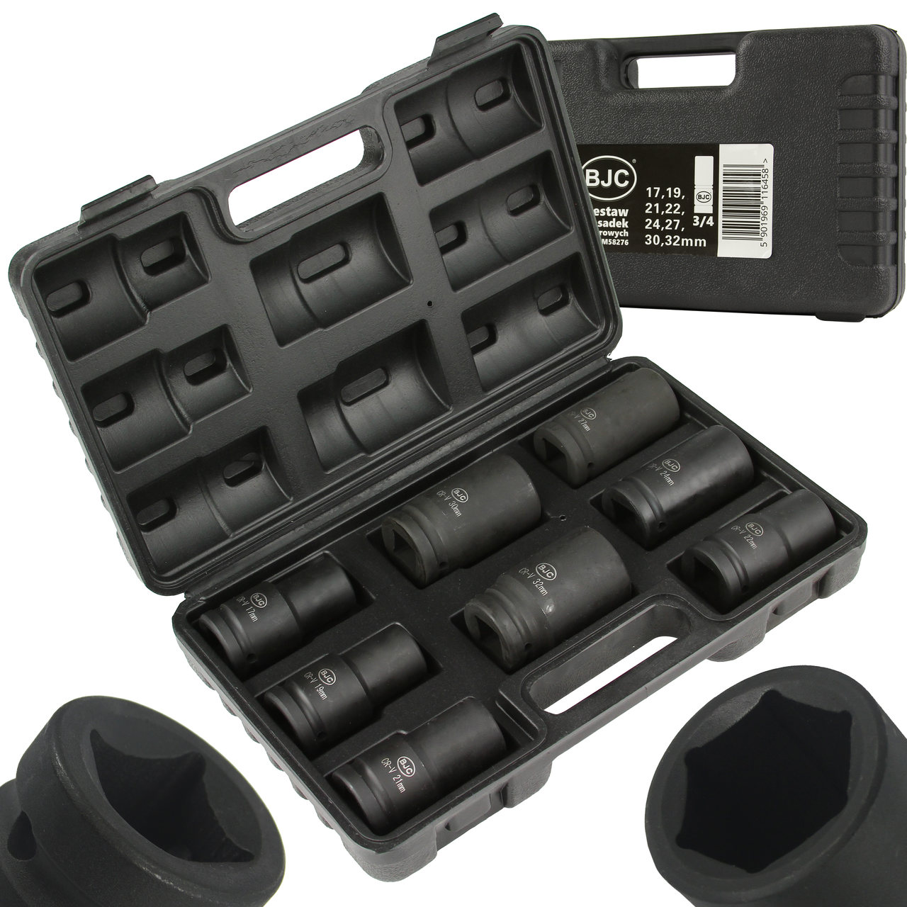 Set di Bussole ad Impatto 3/4" | 8 Pezzi | 17-32 mm | Attacco Esagonale | in Acciaio | con Valigetta