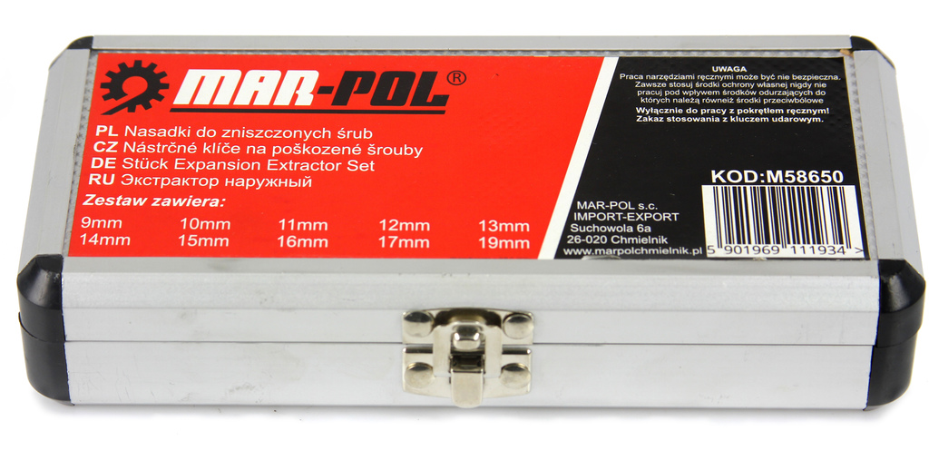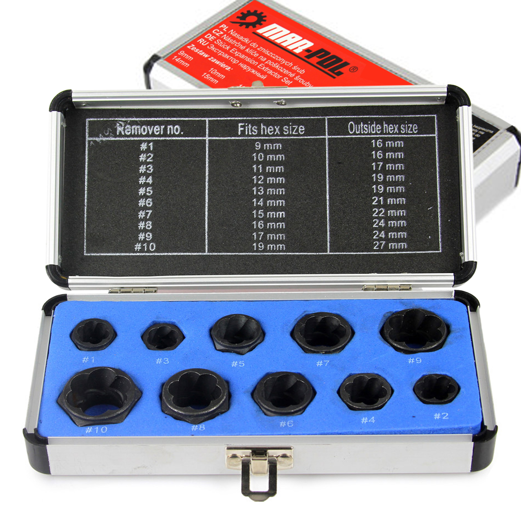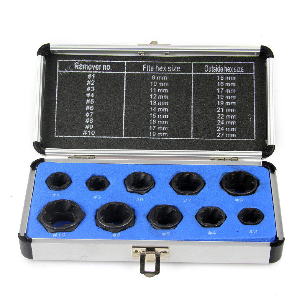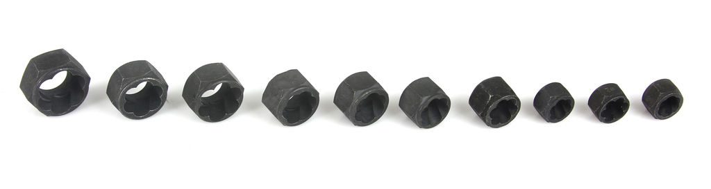 Set Bussole Corte per Rimozione di Viti e Bulloni Danneggiati | 10 Pezzi | 9-19 mm Interno | 16-27 mm Esterno | in Acciaio CrV | con Valigetta