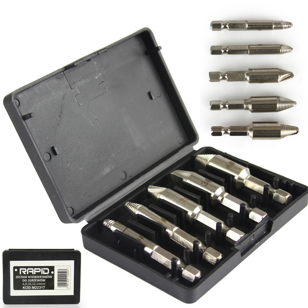 Set di Alesatori HSS per Saldature | per Trapano Puntiforma | 5 Pezzi | Attacco 6 mm | Ø6-14 mm | con Scatola