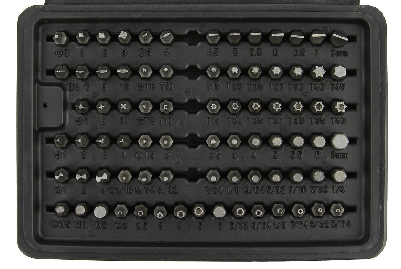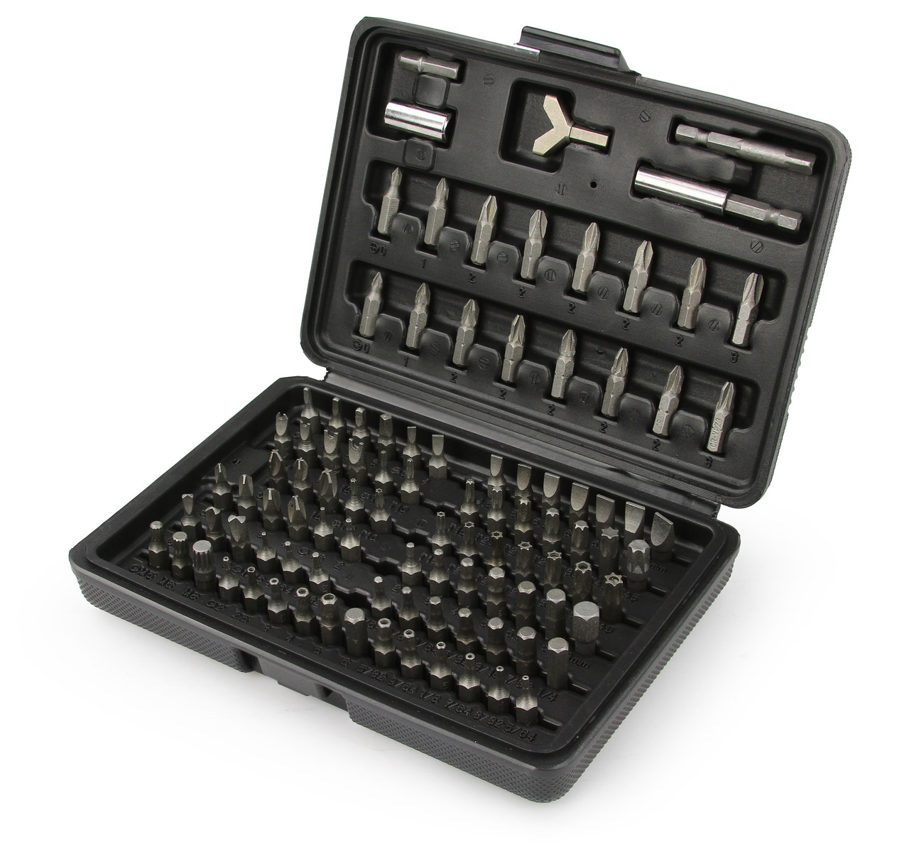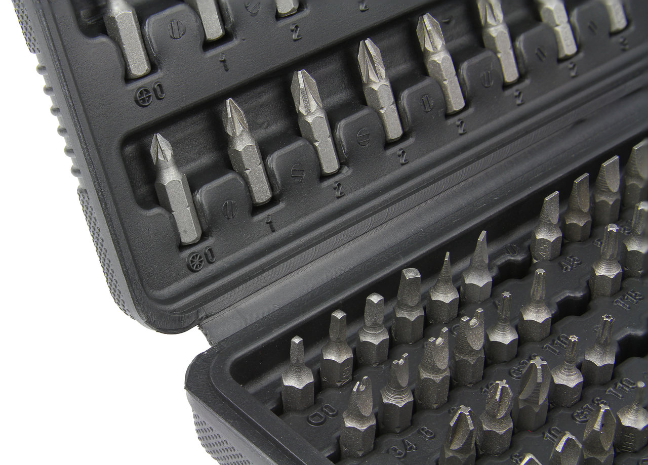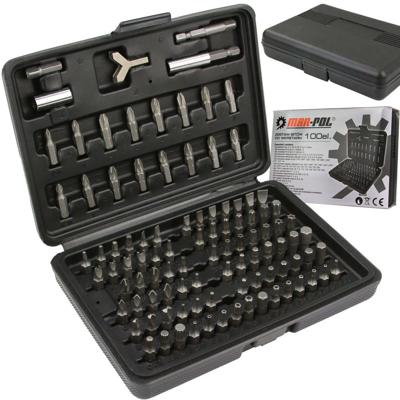 Set di Punte per Avvitatore | 100 Pezzi | Punte Piatte, Quadrate, Esagonali, Torx, Spline, a Croce, a Stella, a Forchetta | Adattatori 1/4" | con Valigetta