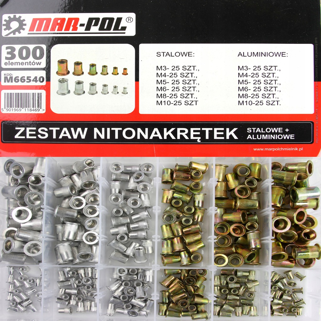 Set di Rivetti Filettati | 300 Pezzi | M3-M10 | in Alluminio e in Acciaio | con Custodia