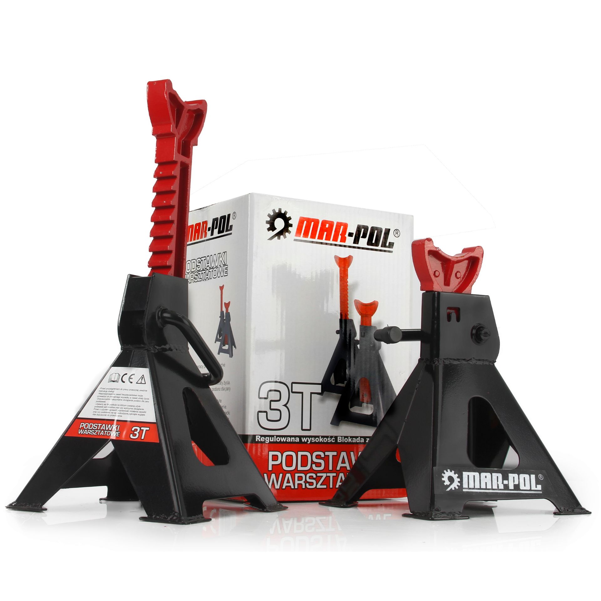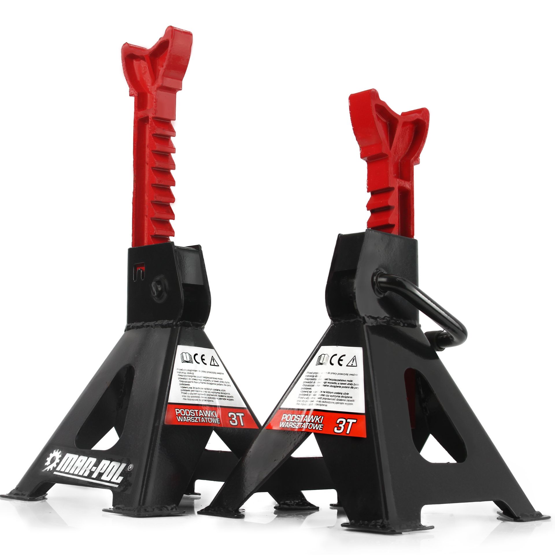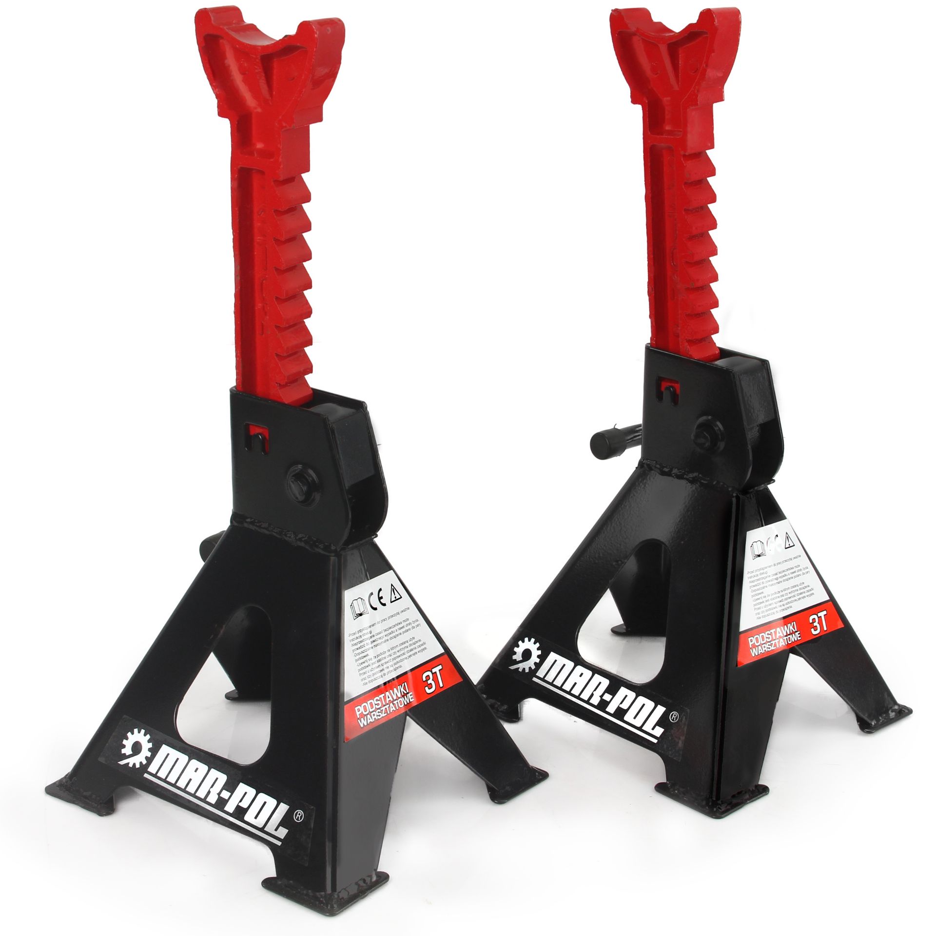 Cavalletti Supporti da 3 Tonnellate | 2 Pezzi | Altezza Minima 27 cm | Altezza Massima 41 cm | Base 19x20 cm | in Acciaio | per Auto Moto Officina