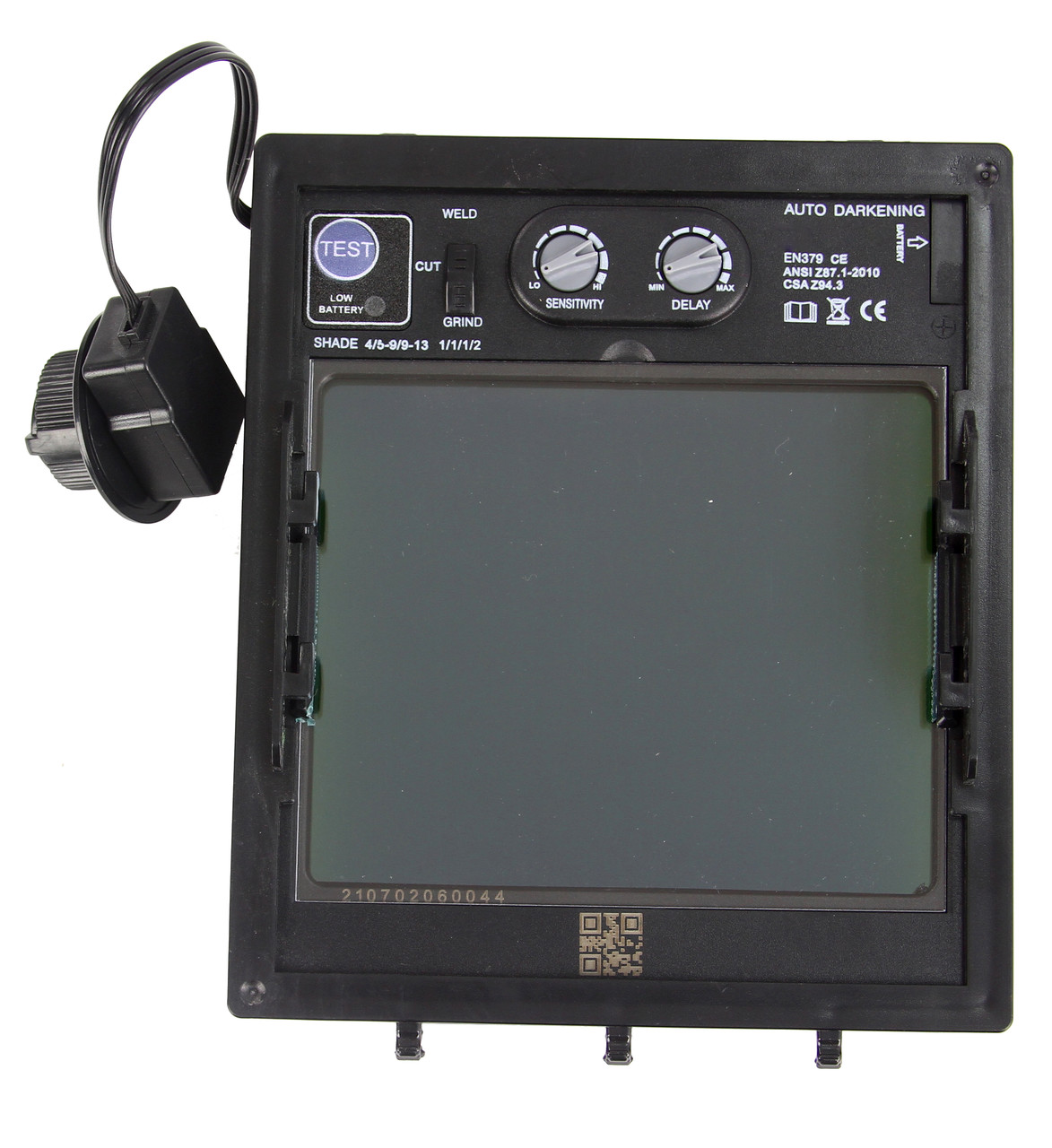 La maschera è dotata di interruttori:- di regolazione del grado di oscuramento