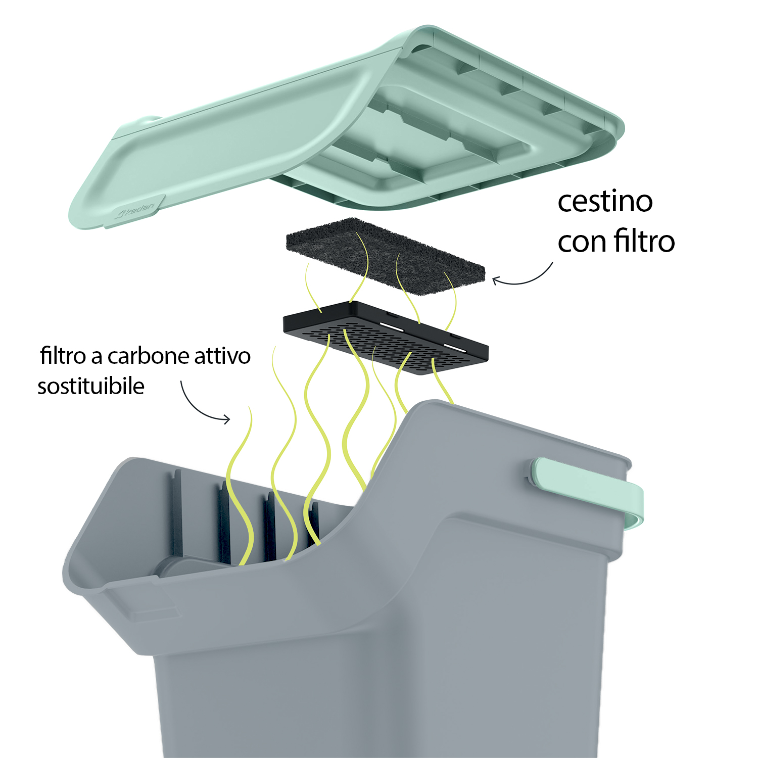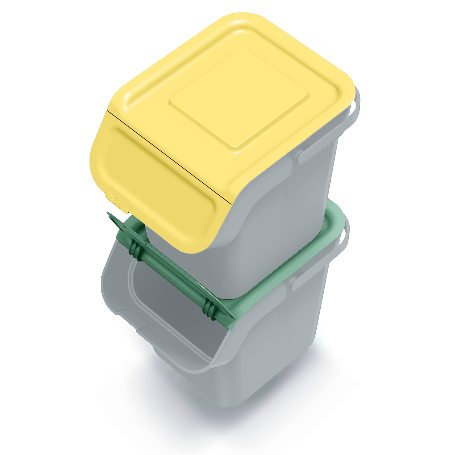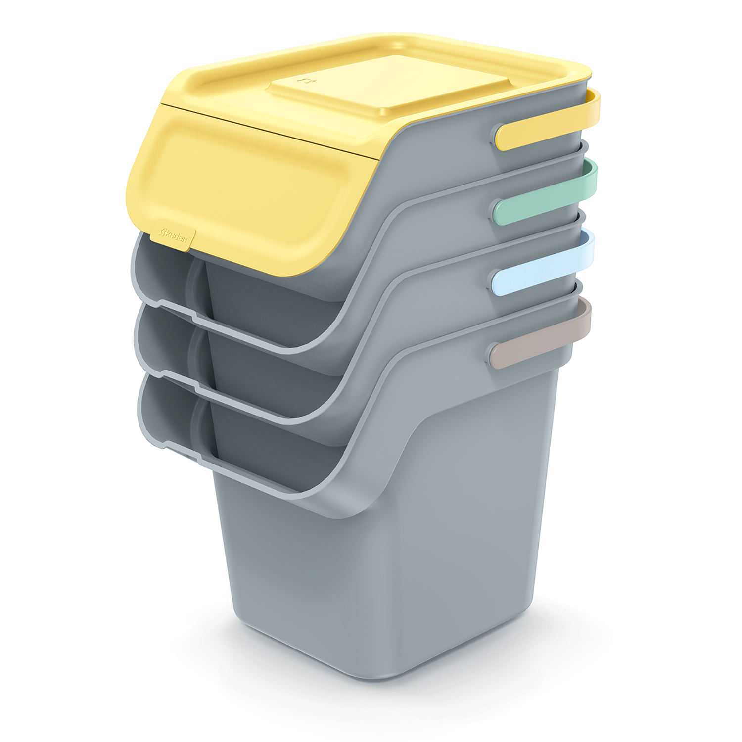 Set di 4 Bidoni Cestini Kaddi Grigi Impilabili Raccolta Differenziata in Plastica 80 Litri (4x20L) da Riciclaggio Pattumiera per Interni Casa Cucina