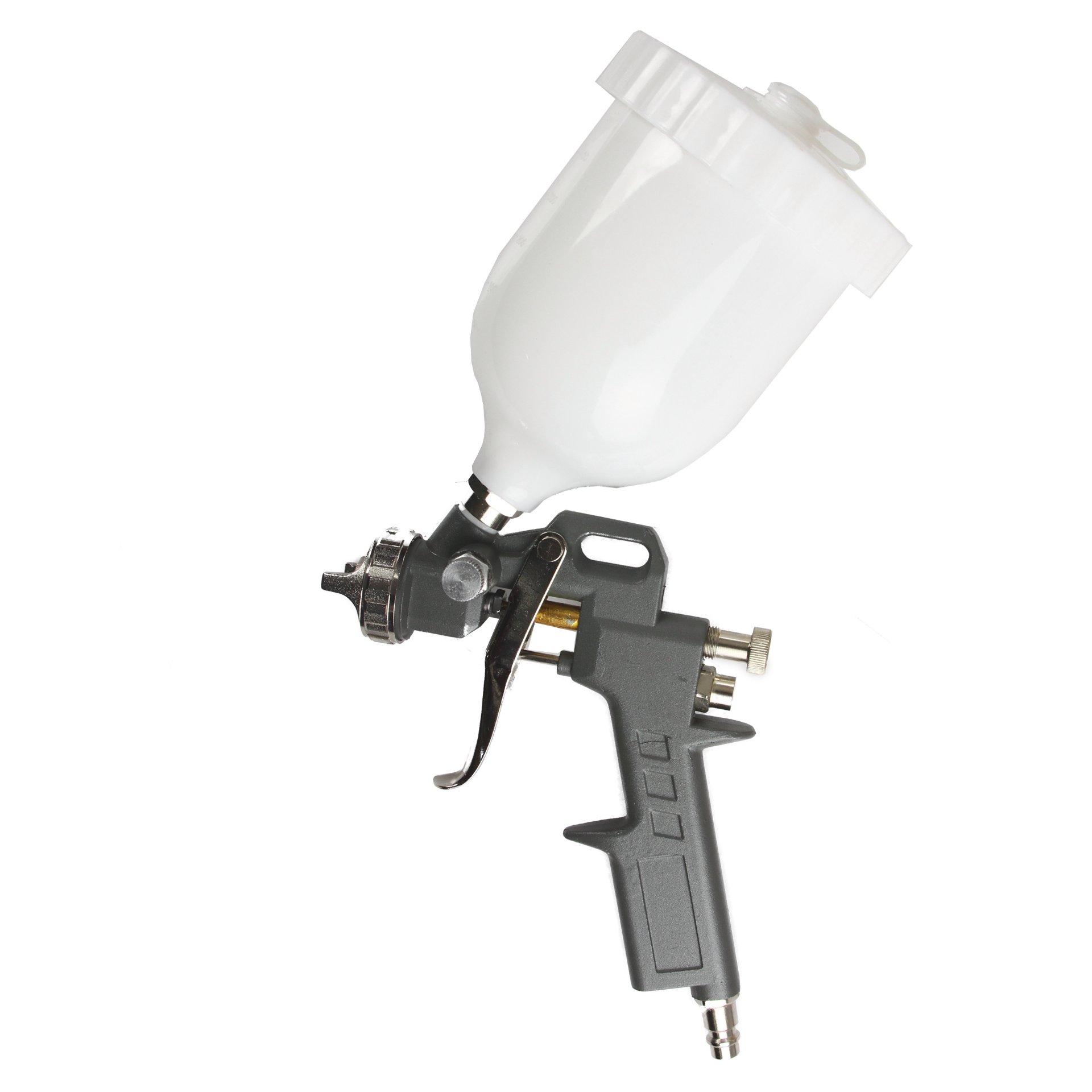 La pistola per verniciatura con ugello da 1,5 mm e serbatoio superiore è ideale per la verniciatura con vernici metalliche, acriliche e a base d'acqua.