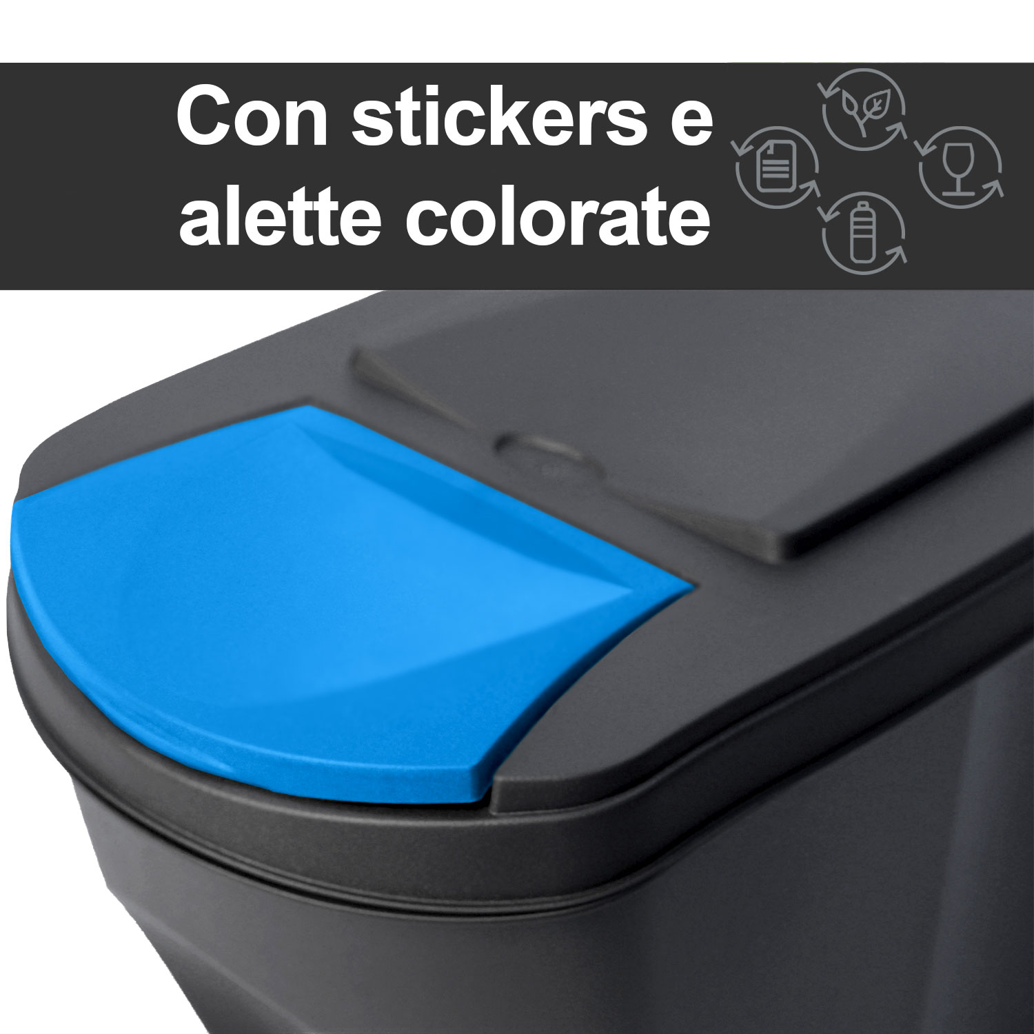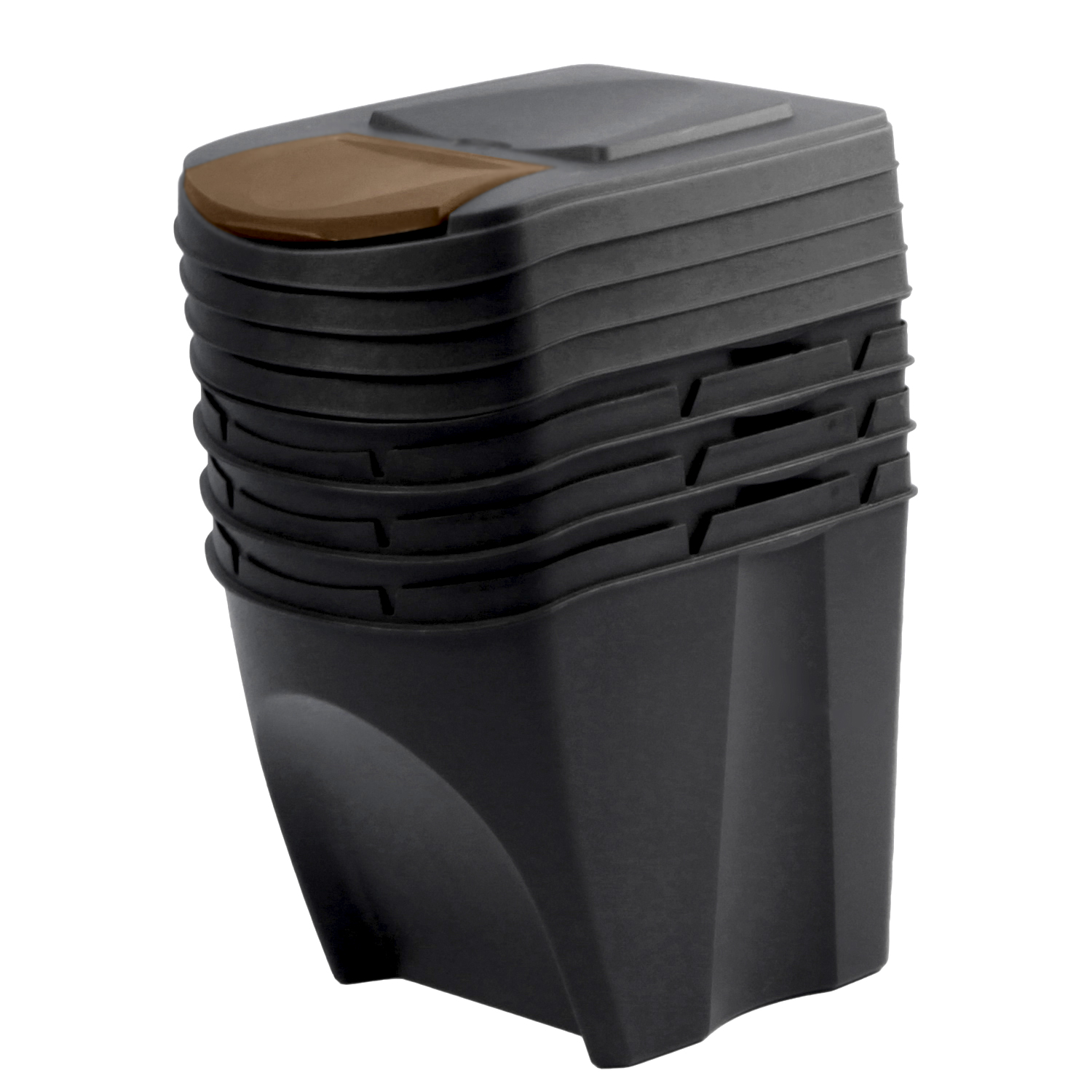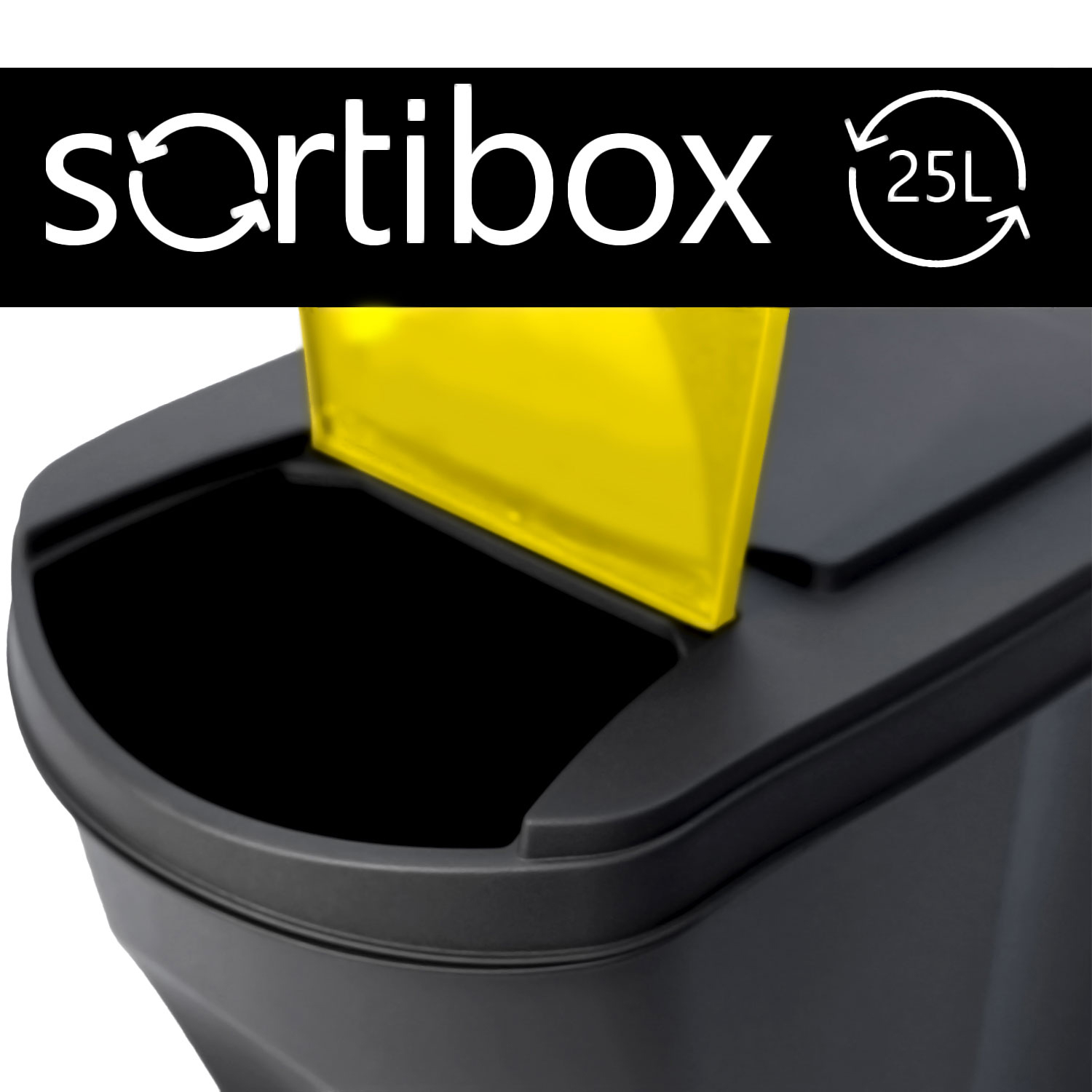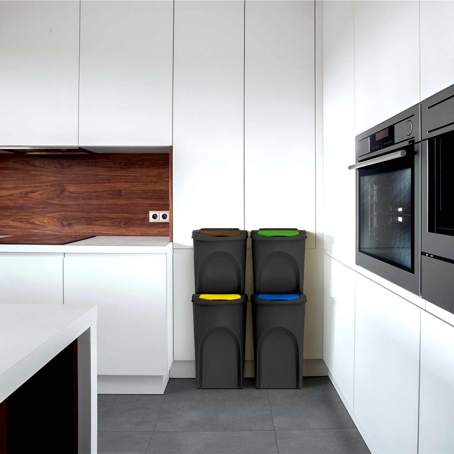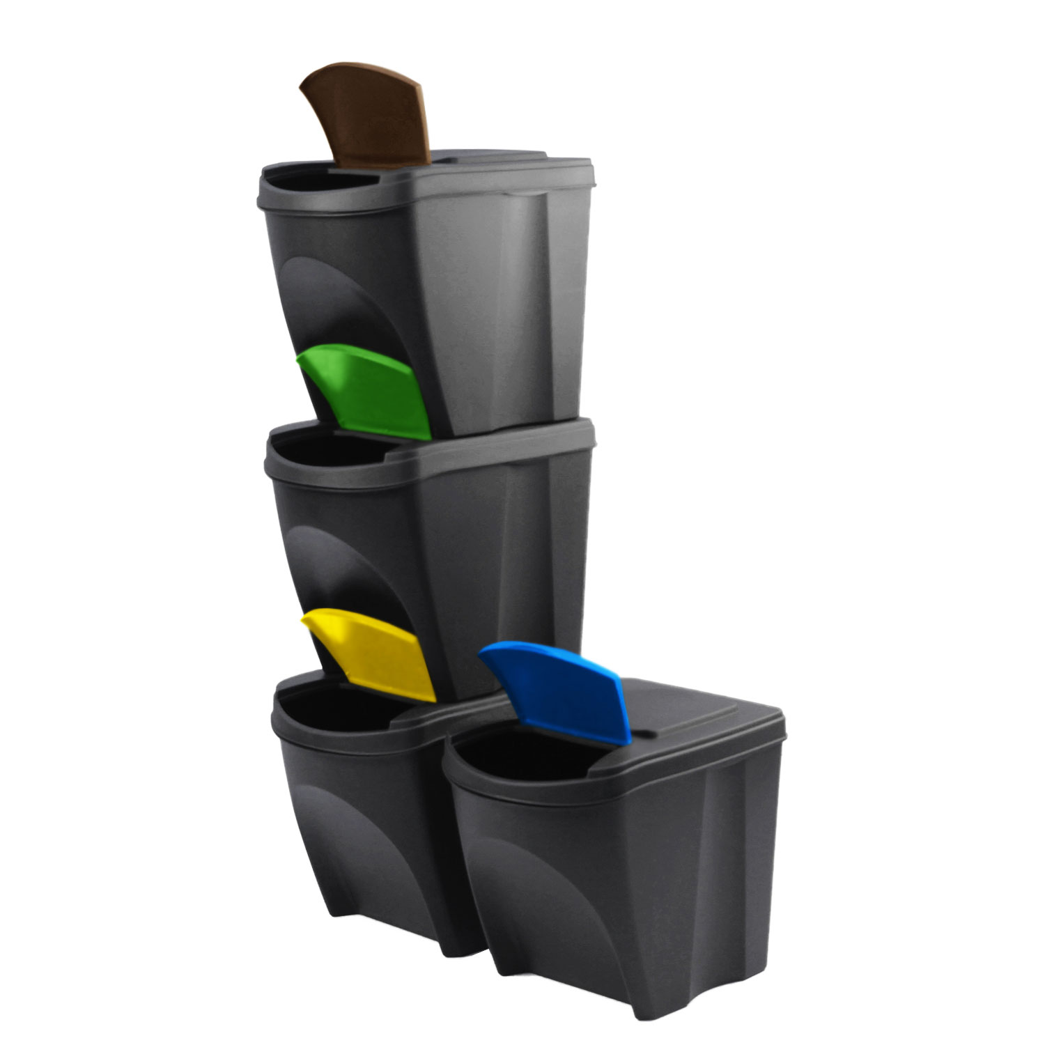 Set di 4 Bidoni Cestini Pattumiere SortiBox | Neri | Impilabili | Raccolta Differenziata Riciclaggio | in Plastica | 100 Litri (4x25L) | per Casa Interni