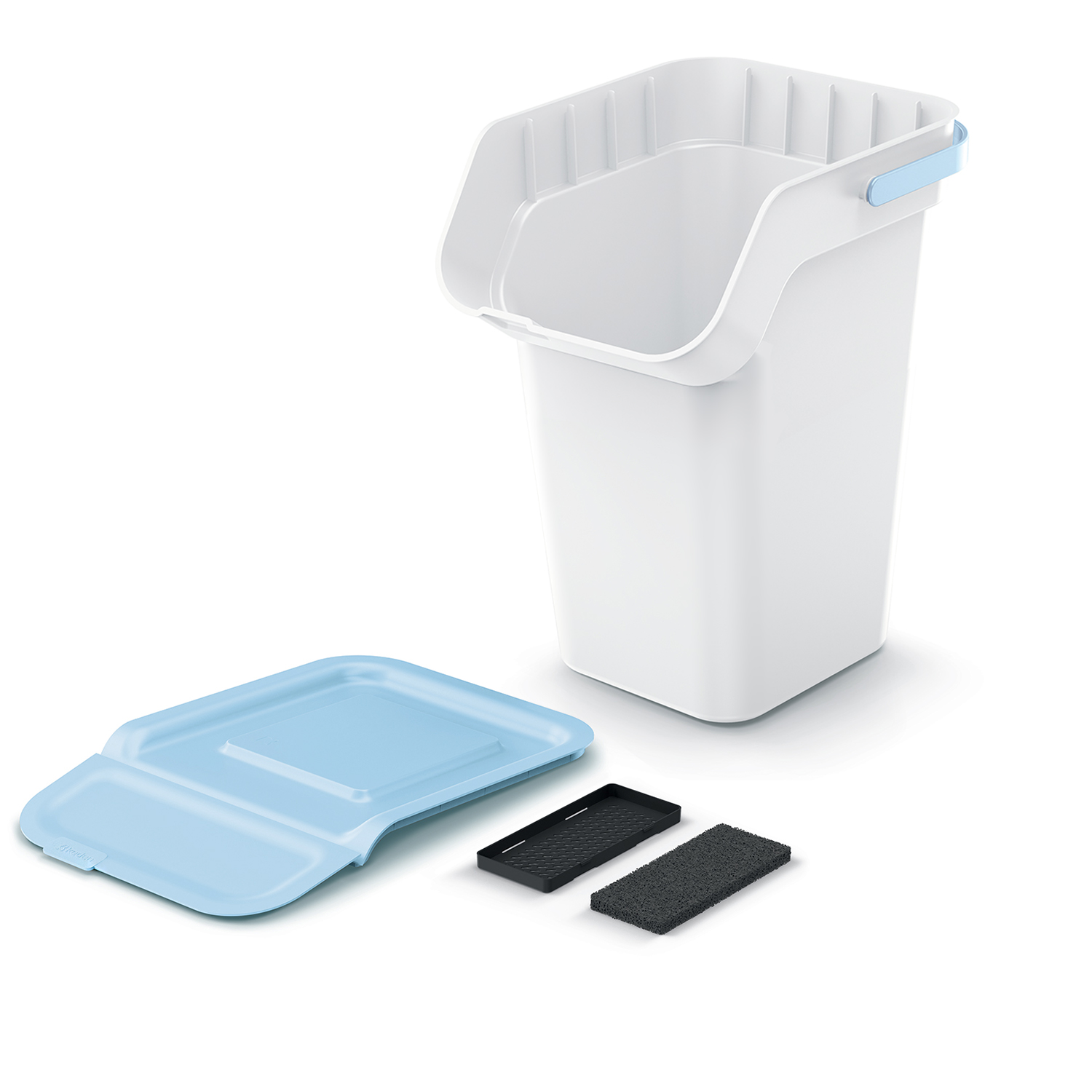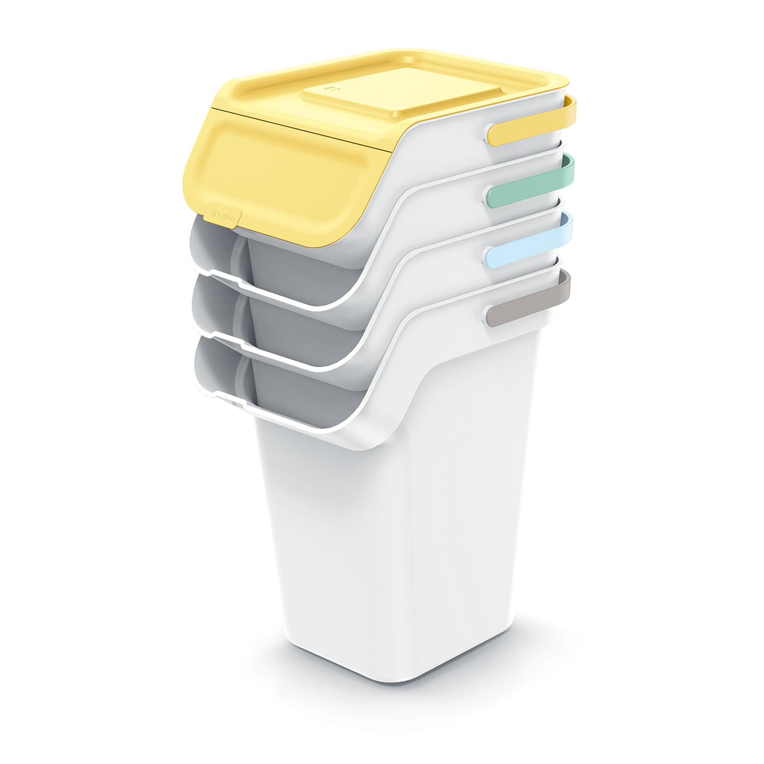 Set di 4 Bidoni Cestini Pattumiere Kaddi Q | Bianchi | Impilabili | Raccolta Differenziata Riciclaggio | in Plastica | 100 Litri (4x25L) | per Casa Interni