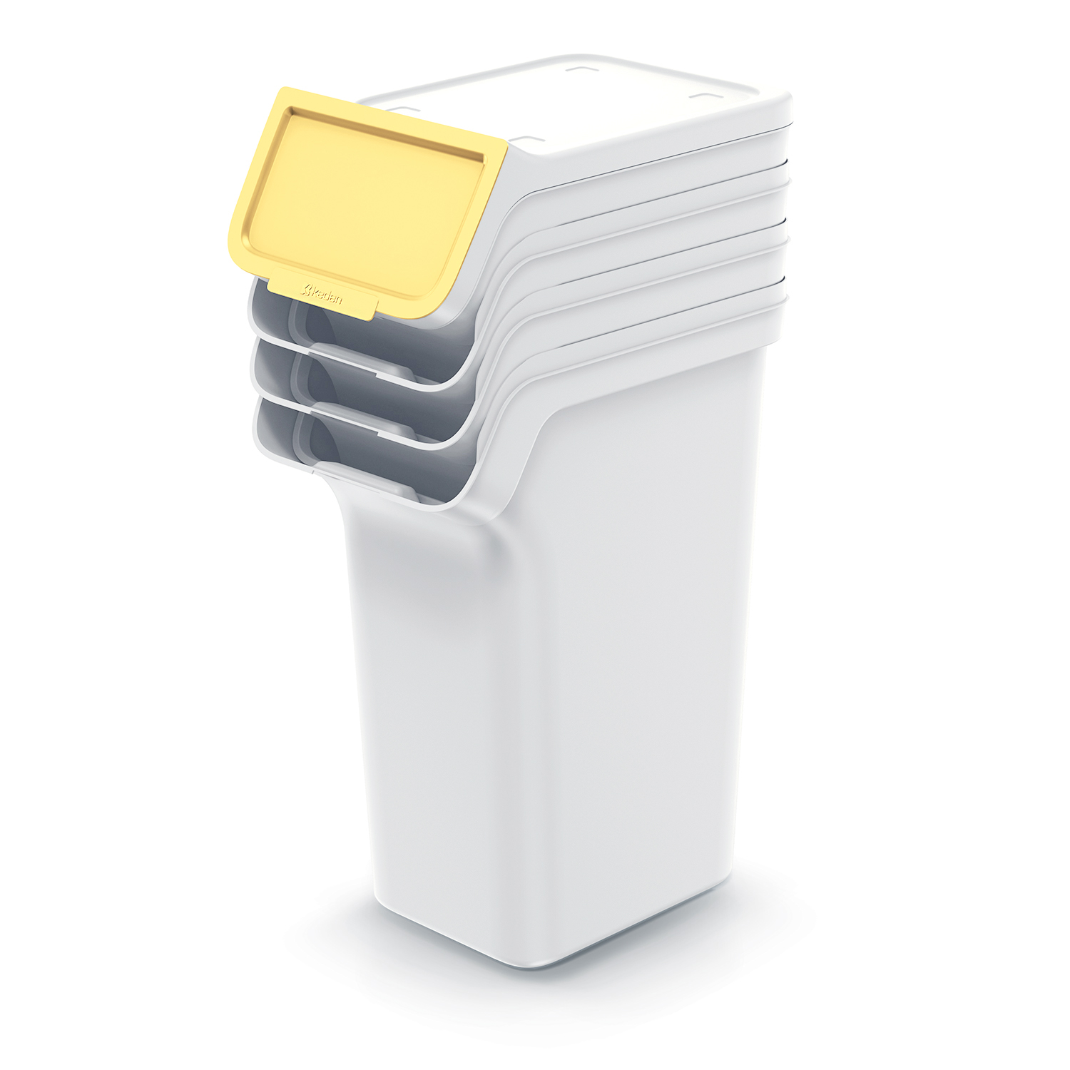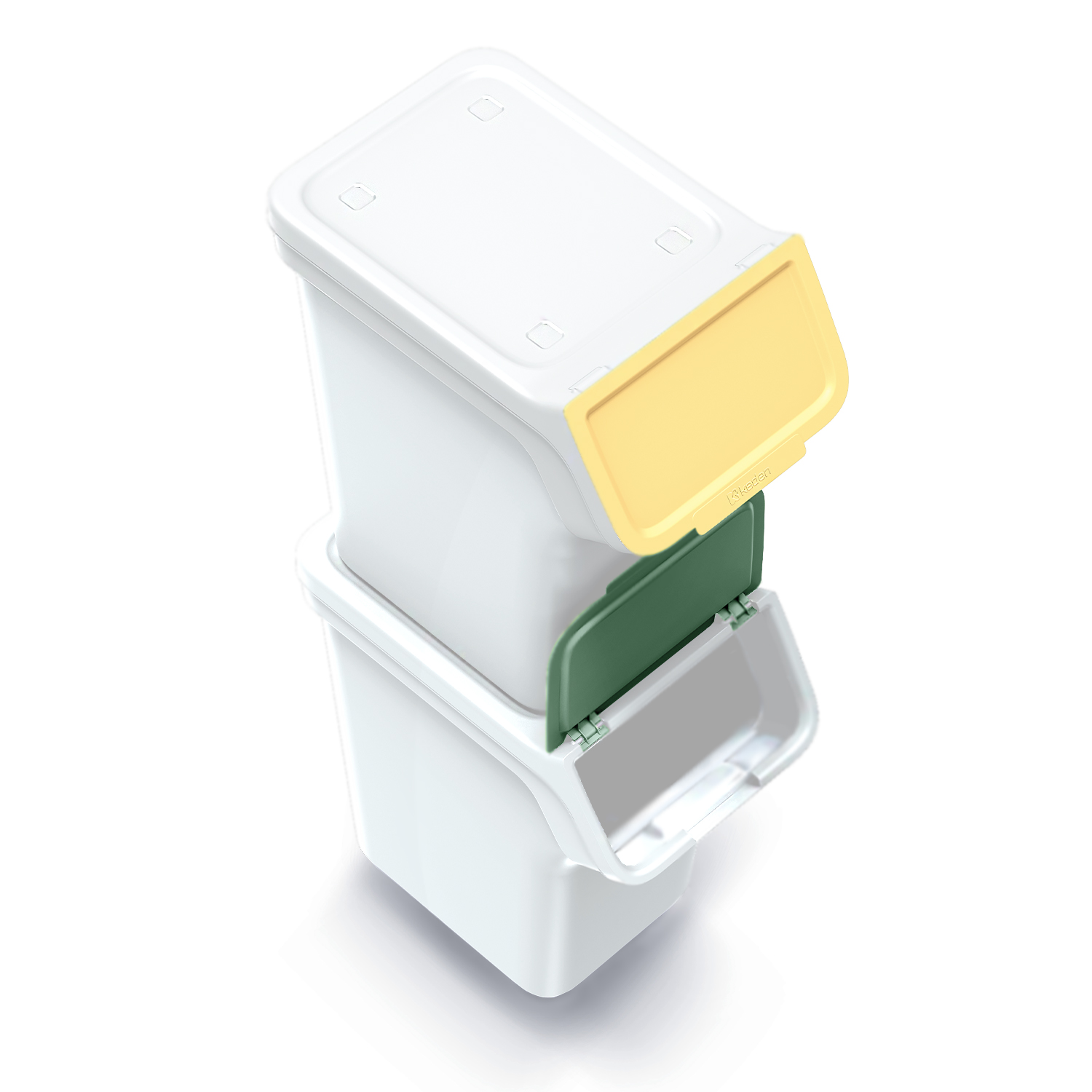 Set di 4 Bidoni Cestini Pattumiere StackBox Q | Bianchi | Impilabili | Raccolta Differenziata Riciclaggio | in Plastica | 100 Litri (4x25L) | per Casa Interni